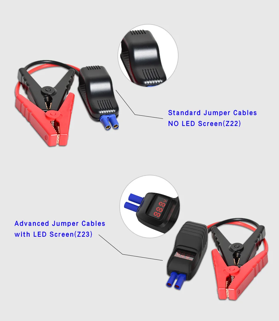 Интеллектуальная конструкция Анти-обратного интерфейса, может быть распознана автоматически, когда зажим батареи изменяется, избегая неправильной работы. Когда Z23 подключен к автомобильному аккумулятору, на его светодиодном дисплее будет отображаться заряд автомобильного аккумулятора.