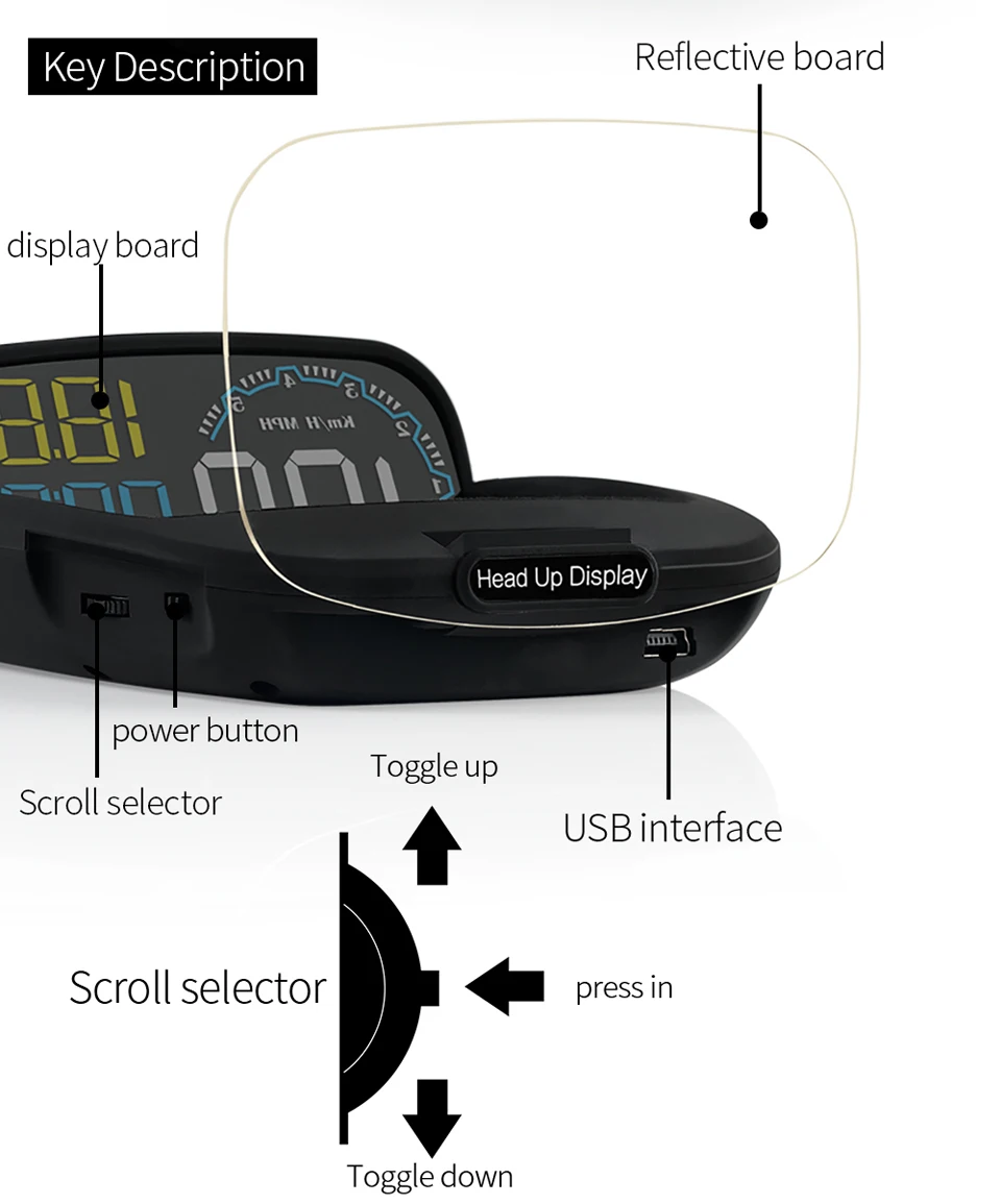 1. Информация о дисплее OBD: скорость вождения, скорость двигателя, расход топлива, температура воды, напряжение, расстояние вождения, время вождения, ручная/автоматическая регулировка яркости, коммутация общественных милей