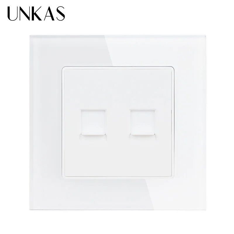UNKAS White Luxury Crystal Glass Panel Double RJ45 Internet Data Computer Jack CAT5E Connector Outlet Wall Socket