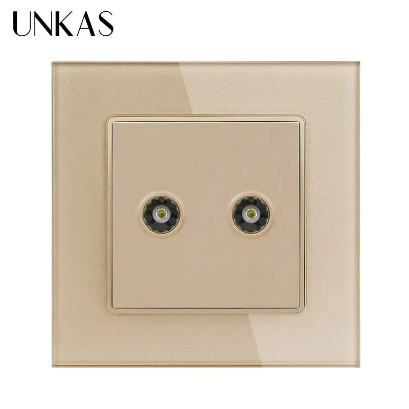 Розетка телефонная UNKAS, белая, роскошная, Хрустальная, двойная, 1 клавиша, RJ11, 2 ядра, популярная в Испании