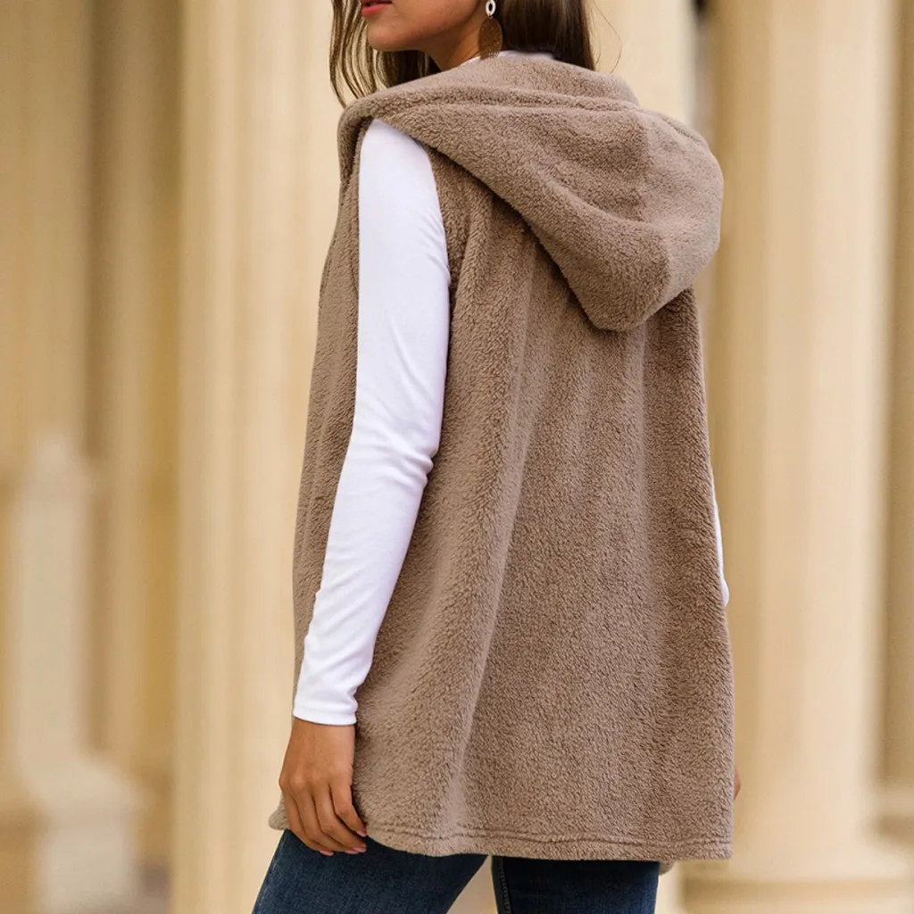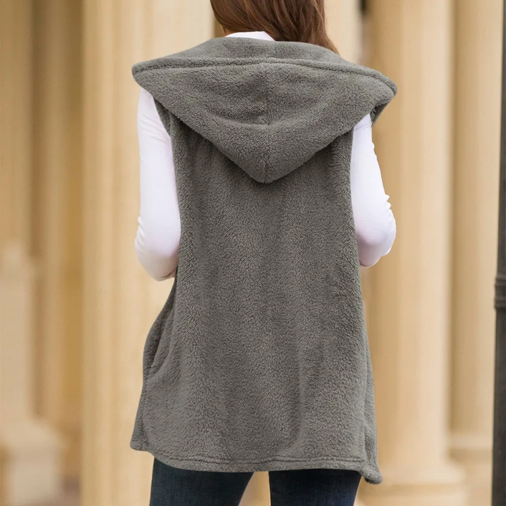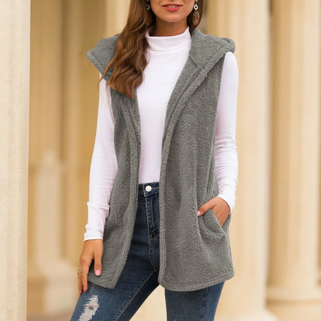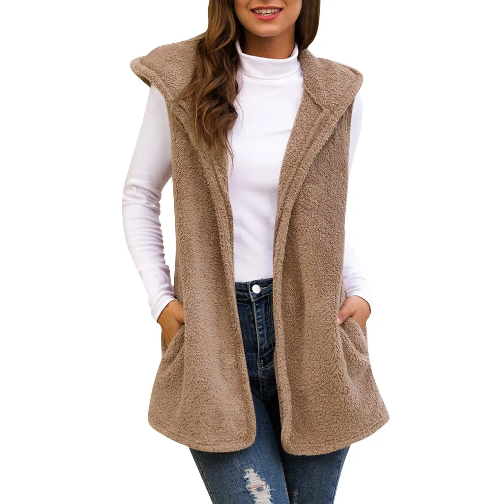Женский кардиган с капюшоном и искусственным мехом, флуффли, винтажный, лохматый жилет, куртка, длинное пальто