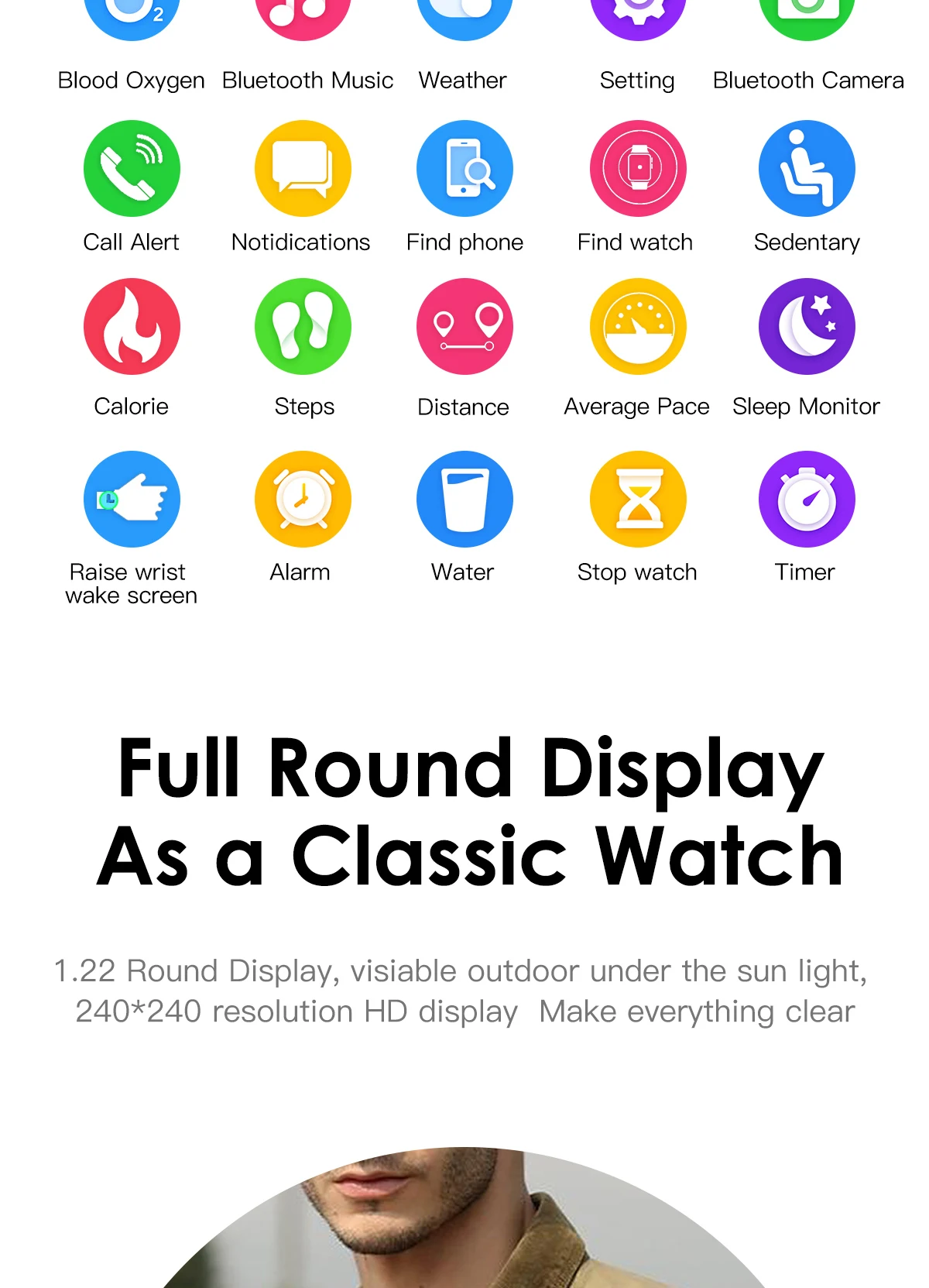 Полный Круглый дисплей как классические часы 1,22 круглый дисплей, разрешение 240*240 HD дисплей делает все ясно Отслеживать все ваши мероприятия Мульти мониторинг спортивных занятий