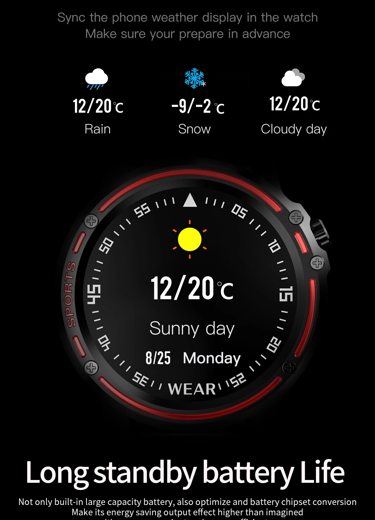 При прослушивании музыки по Bluetooth Проверьте погоду перед отправкой Длительный режим ожидания время работы от аккумулятора