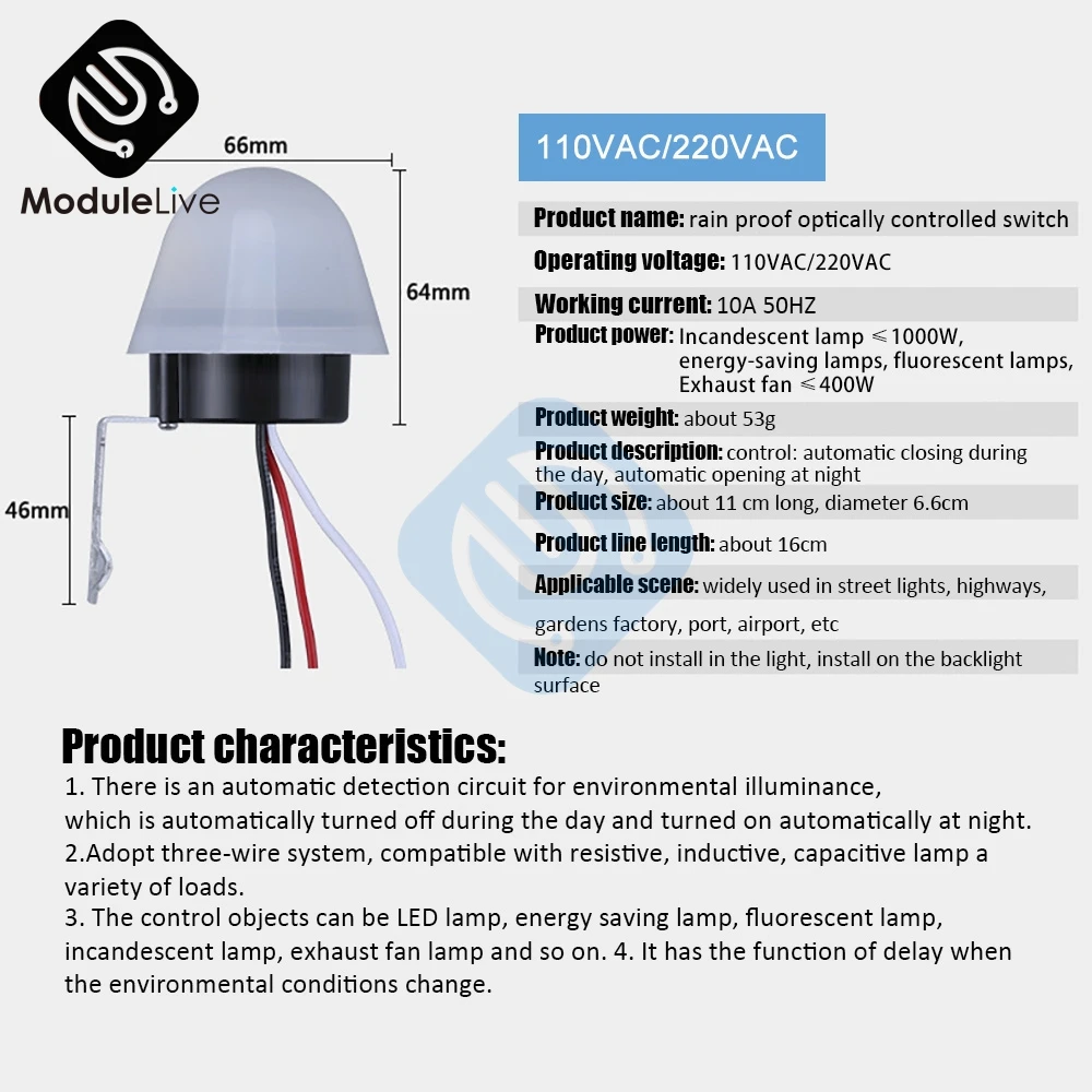 На основе соответствующей информации в различных областях и на основе опыта нашей фабрики, наша фабрика изменила автоматический выключатель уличного фонаря с более практичным значением. Переключатель не зависит от погодного сезона, его функция надежна, его чувствительность высокая, и он хорошо продается во всем мире и очень популярен среди пользователей.