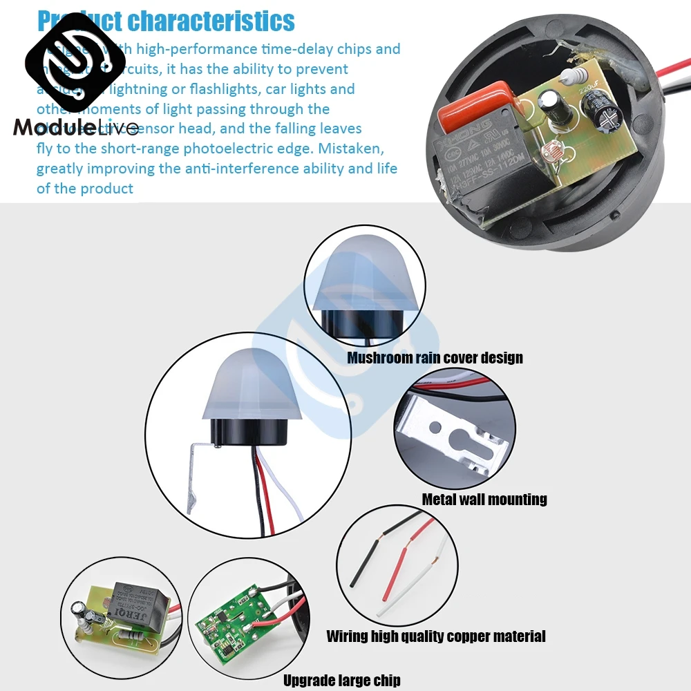 Цепь оборудована схемой задержки, которая имеет анти-помехи способность предотвратить случайный светильник или ручной светильник вспышки, автомобиль, и другой светильник, освещающий фотоэлектрическую головку, и Падающие листья являются низкими, чтобы временно блокировать оптический источник питания.