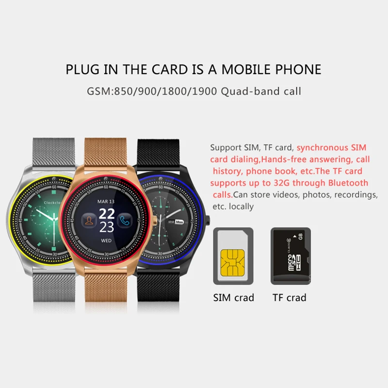 N9 Модные Смарт-часы для мужчин с поддержкой sim-карты с камерой, шагомером, Bluetooth 3,0, трекер сна, умные часы для Android IOS телефона