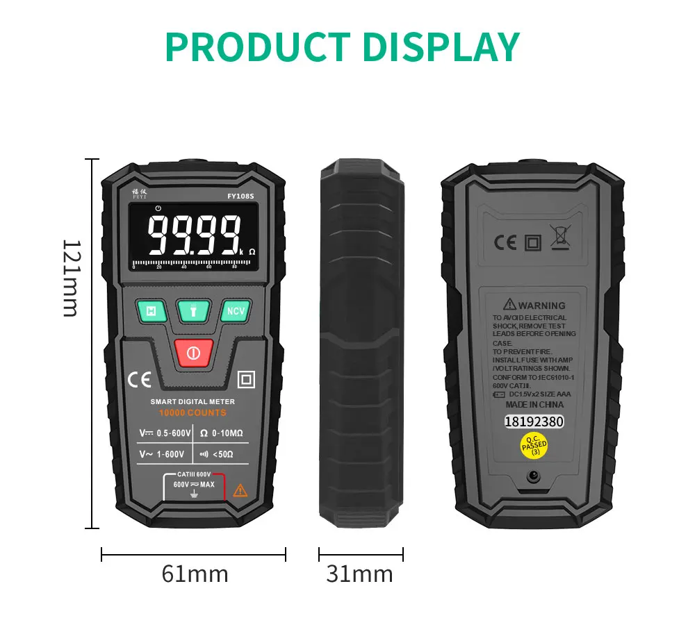 -Этот счетчик имеет Бесконтактное обнаружение (NCV) . Функция переменного напряжения. Контрольная индикация переменного тока и напряжения переменного тока Верна и действительна. Этот счетчик имеет функцию автоматического отключения.