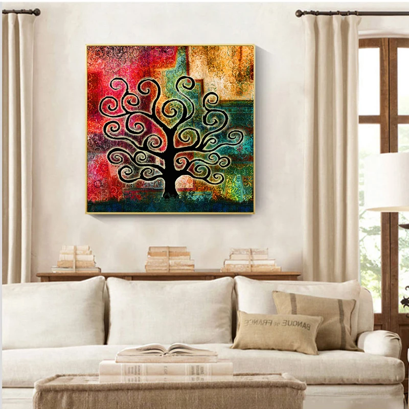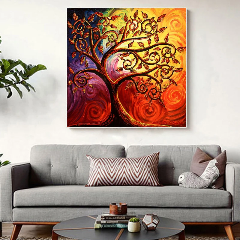 Картина маслом абстрактная на холсте настенная живопись для домашнего декора ручная работа Древо Жизни Холст Живопись как уникальные подарки
