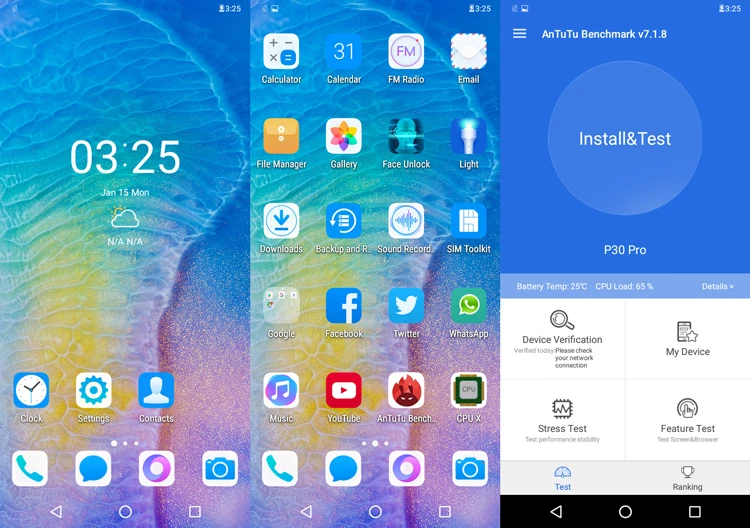 6,26 дюймов HD + IPS емкостный водопадный notch экран, 1520 * 720px, 240 точек/дюйм