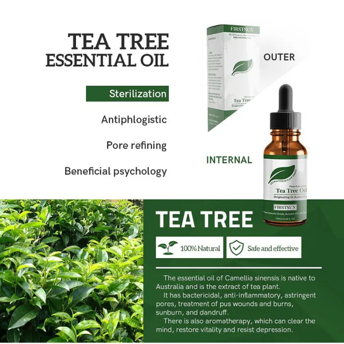 1. Масло для массажа чайного дерева; чистое, успокаивающее, успокаивающее и расслабляющее