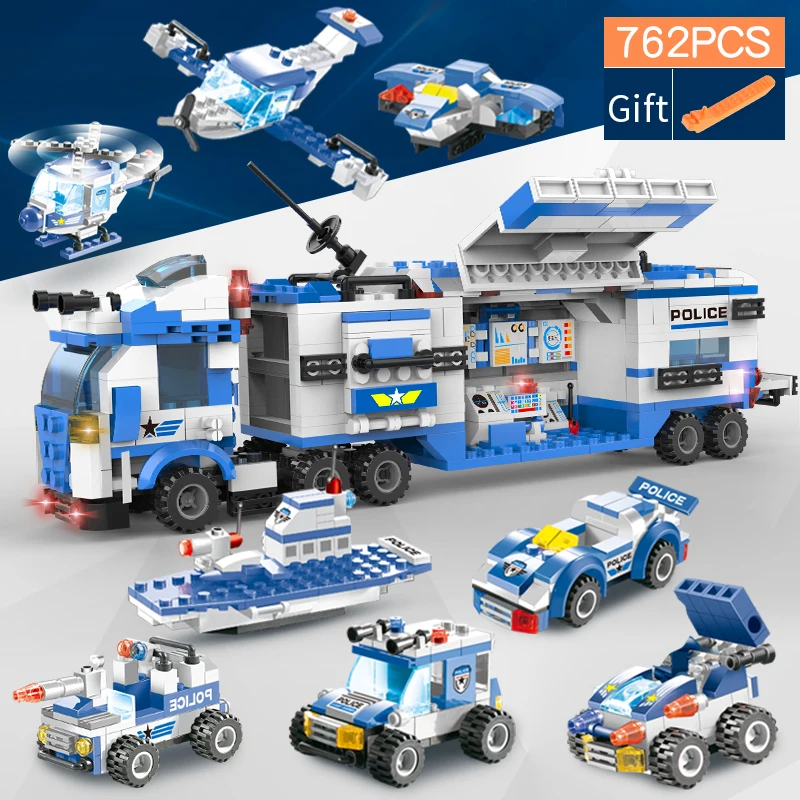 Городской полицейский серии 8 в 1 автомобиль вертолет полиция Staction Строительные блоки DIY Кирпичи совместимы с