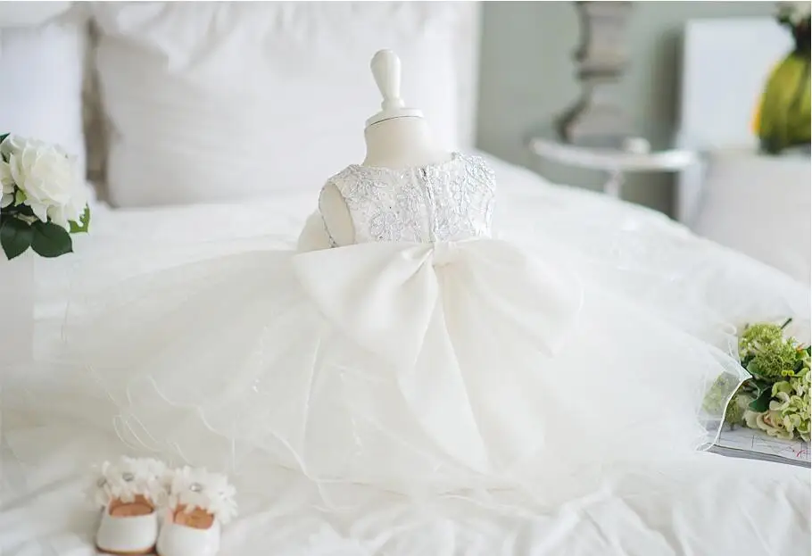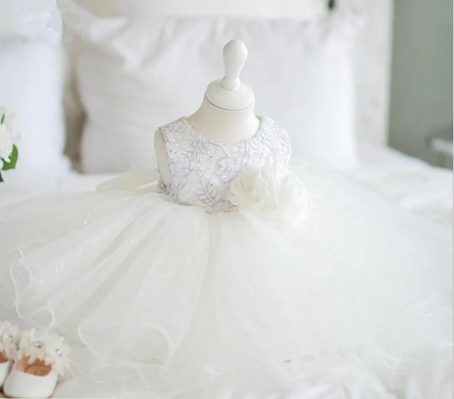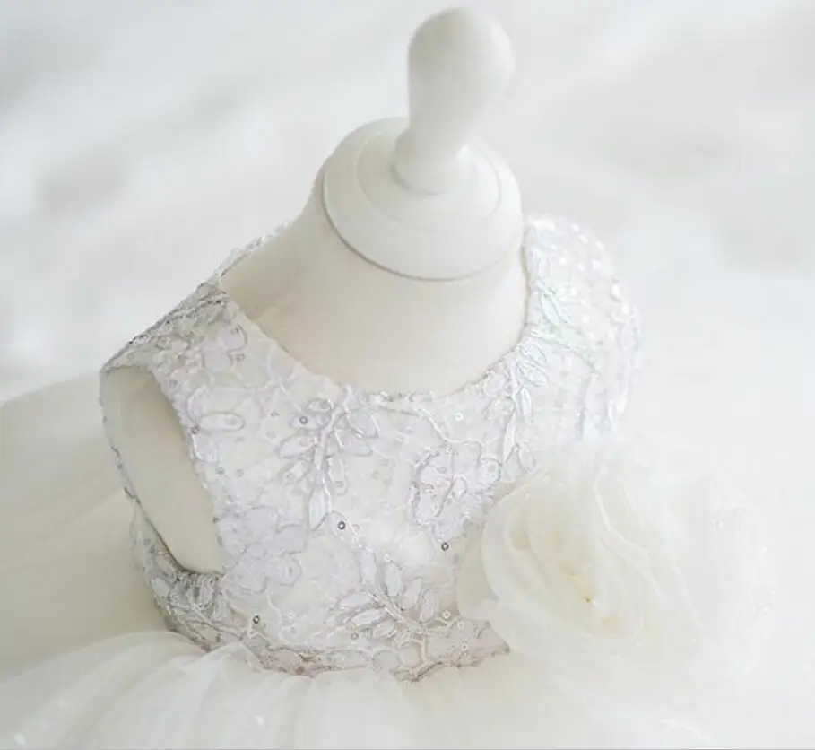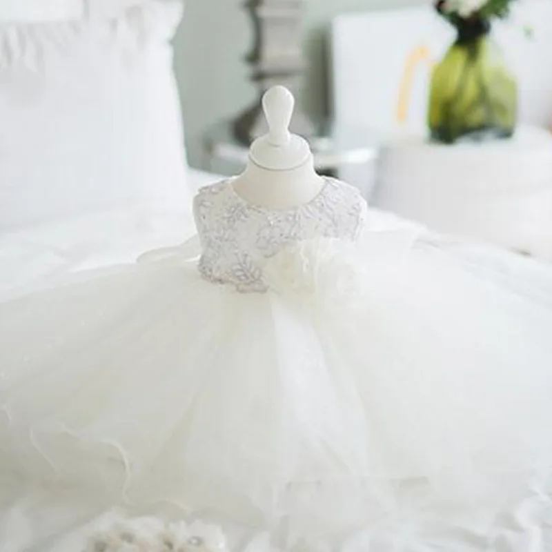 Платья для маленьких девочек Цветочный Тюль цветок детское платье белое крещение бальное платье новорожденный день рождения принцесса платье для крещения