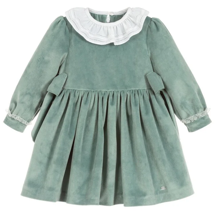 Детское бархатное платье с длинным рукавом, зеленое платье для девочек на осень и зиму, Новогодняя одежда на день рождения, 2019