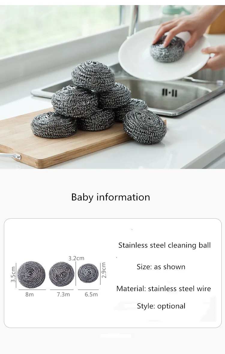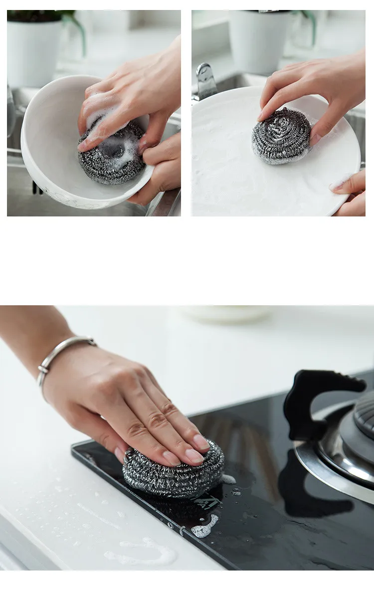 Бытовой стальной шарик, кухонный шарик для мытья посуды, нержавеющая сталь, щетка для чистки мячей, горшок для мячей, щетка для мытья посуды, горшок, артефакт, 6 упаковок
