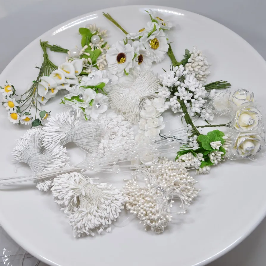 Белый гибридный цветок вишня стемен ягоды Набор DIY торт Рождество Свадьба Gifs коробка венки украшения