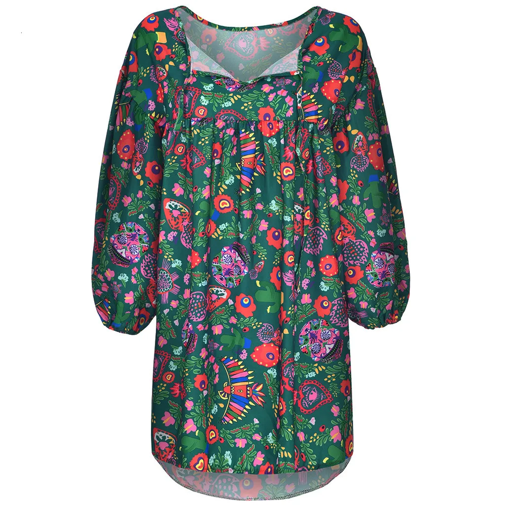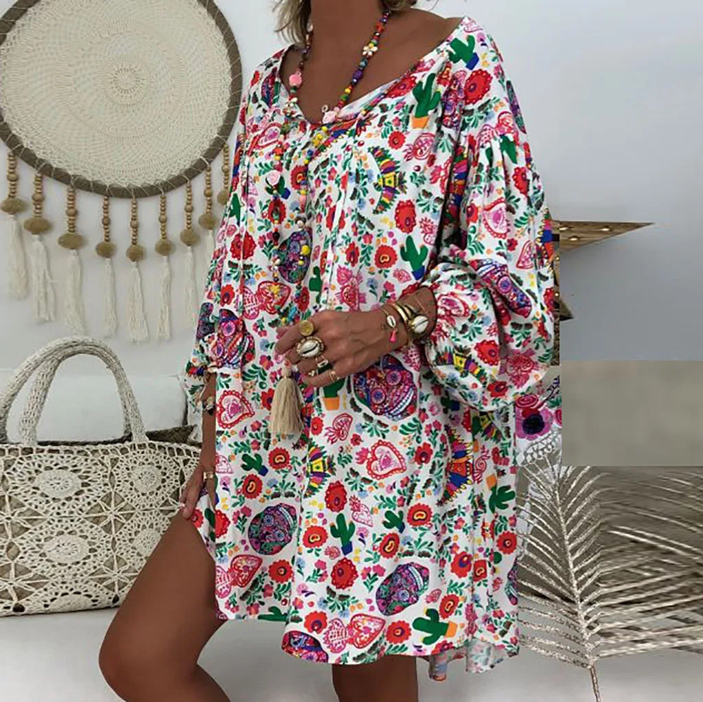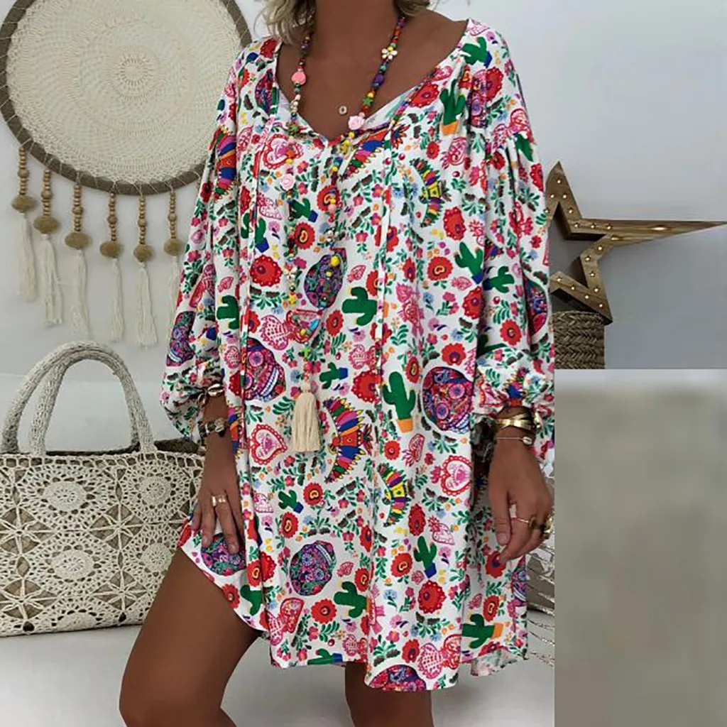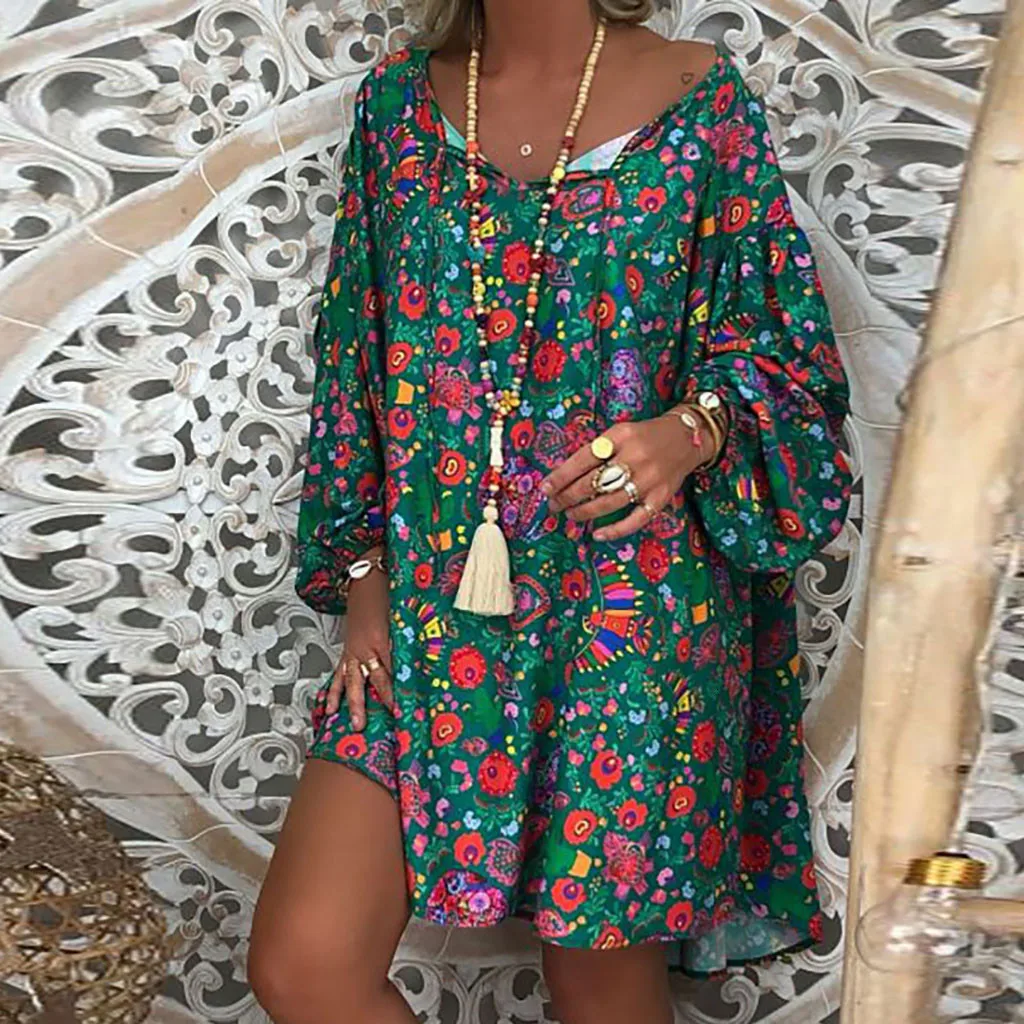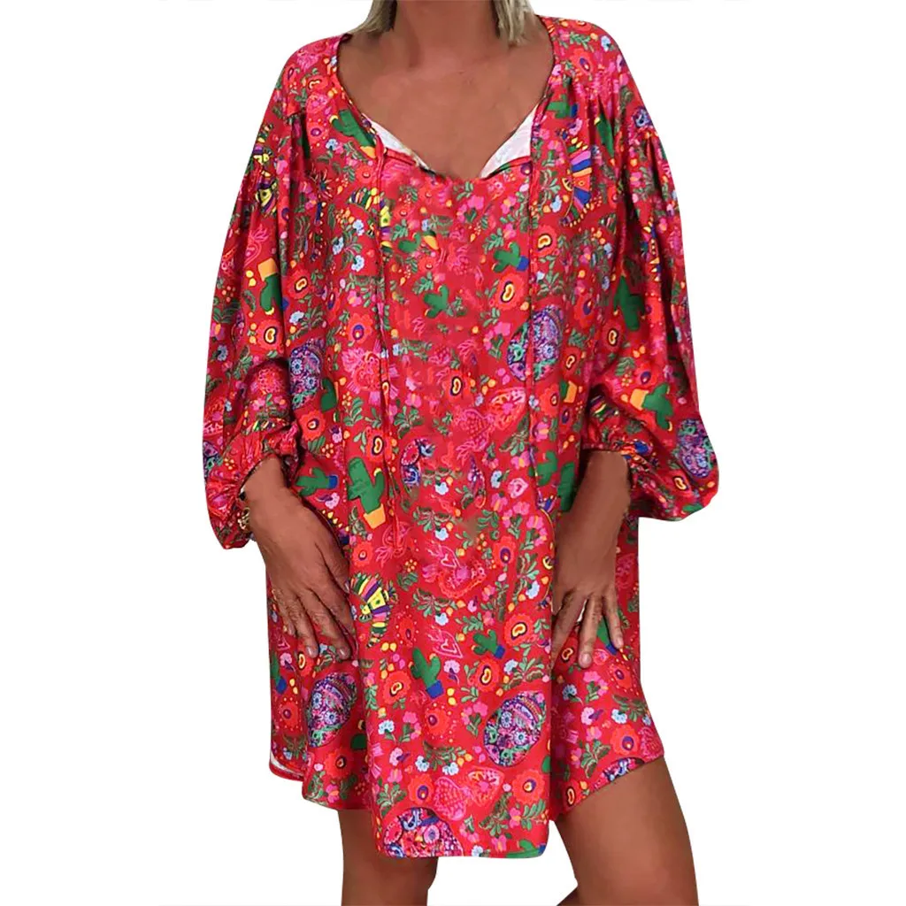 Женское платье размера плюс 5XL, Свободный цветочный принт, рукав три четверти, вечерние мини-платья, повседневное женское платье, es ropa mujer vestidos, Новинка