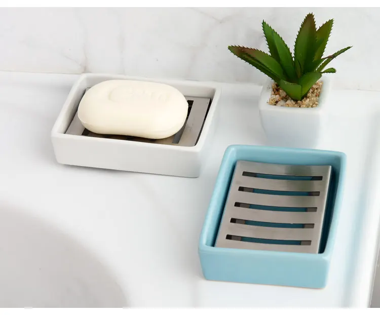 Material: Soap dish made of high quality SUS304 stainless steel and premium cermic, very sturdy and much longer service life than plastic. Dual-Layer Design: The stainless steel tray can be removed so you can easily wash it out. The water drains off the soap so the soap doesn't melt and extends the life of your soap. Modern Design: The perfect combination of high quality stainless steel and cermic, elegant and generous design highlight your taste. Wide Application: They work great in the shower, bathroom, bathtub, counter top, kitchen, etc. For soap, dish washing sponge, etc. Dimension: Stainless steel tray: 10L x 7.2Wcm ( 3.9 x 2.8inch ); Ceramic dish: 11.7L x 8.8W x 2.9Hcm ( 4.6 x 3.4 x 1.1inch ). Specifications: - Material: SUS304 stainless steel and cermic. -Dimension: Stainless steel tray: 10L x 7.2Wcm ( 3.9 x 2.8inch ); Ceramic dish: 11.7L x 8.8W x 2.9Hcm ( 4.6 x 3.4 x 1.1inch ). - Weight: 11.64oz (330g/1pics) Package List: - 1 x Soap Holder Note: Please allow minor error due to manual measurement. Due to the difference between different monitors, the picture may not reflect the actual color of the item.