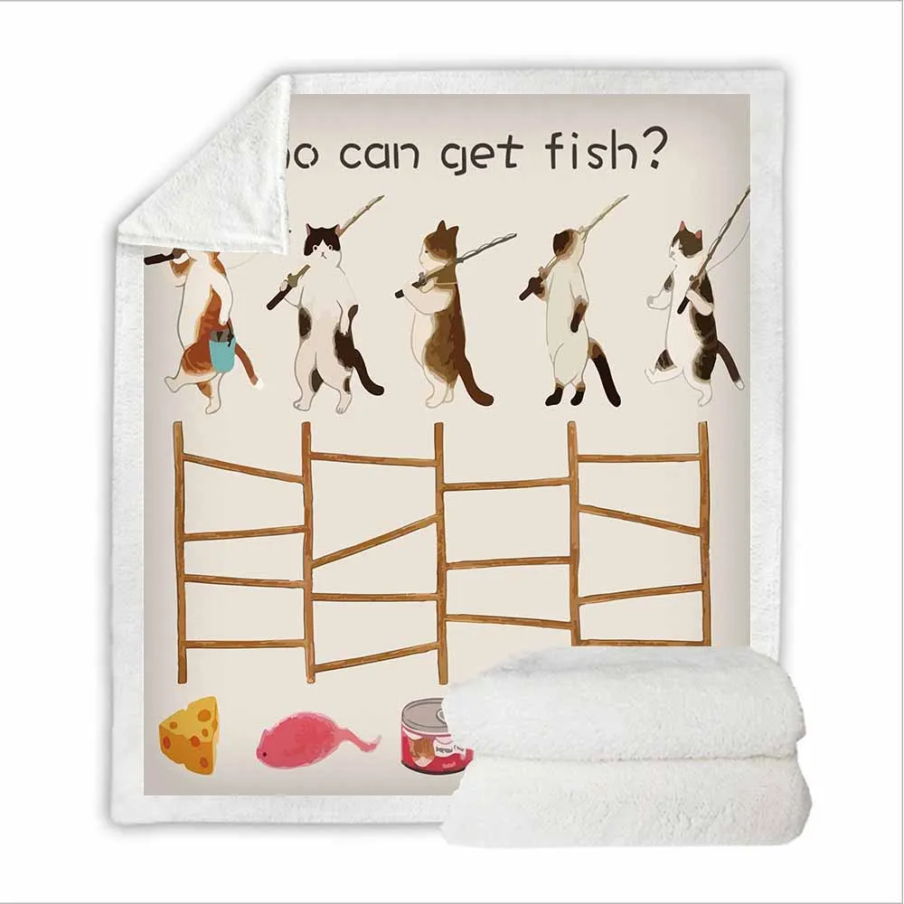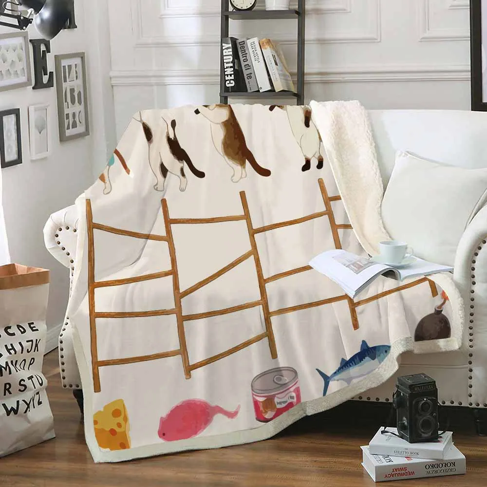 Одеяло для игры в лестницу, мягкое шерстяное одеяло из кораллового флиса с изображением кошки, детское зимнее теплое одеяло до колена, одеяло для дивана и телевизора