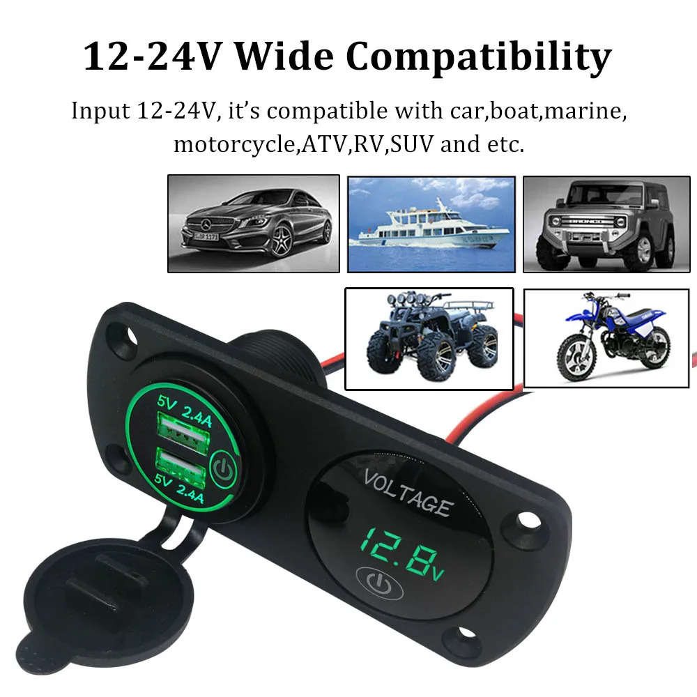 4. Вход 12 V-24 V, оно широко совместим с любыми автомобиля, мотоцикла, ATV, лодка, UTV, кемпер, жилых автомобильных прицепах, туристский прицеп, езда косилки, трактора и т. д.