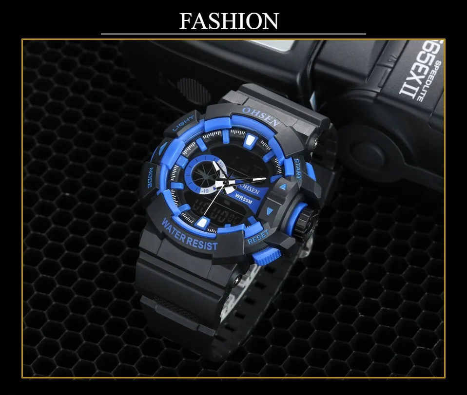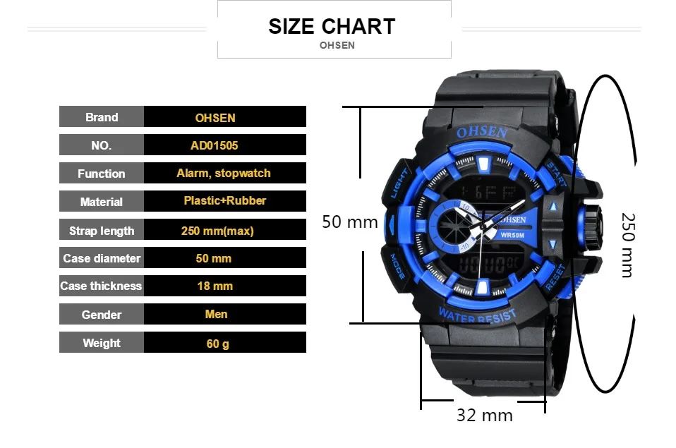 Прочный водонепроницаемый чехол Высокопрозрачное полимерное зеркало Резиновый ремешок хорошего качества, более удобный Задняя крышка из нержавеющей стали с 3D логотипом OHSEN