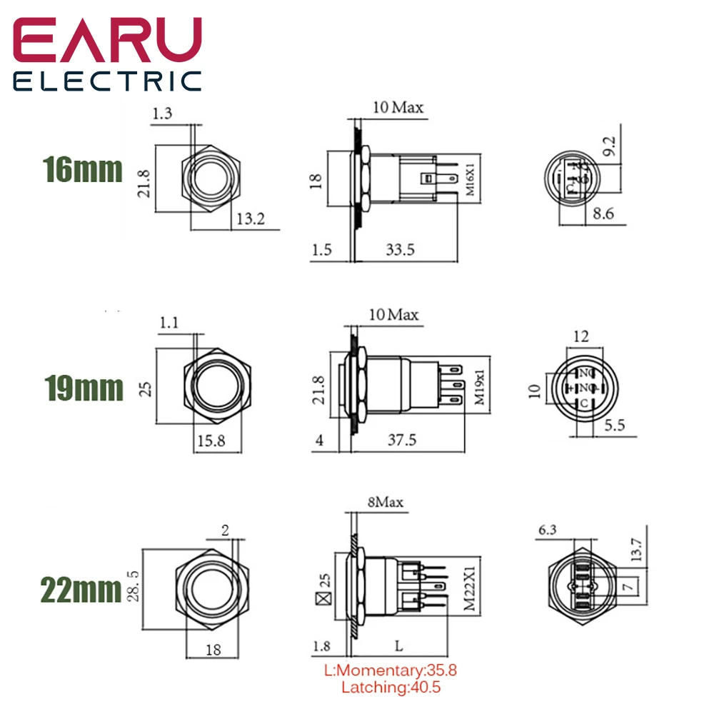 16/19/22 мм оксид черный металлический кнопочный выключатель светодиодный светильник "сделай сам" с возможностью нанесения собственного логотипа значка сигнала