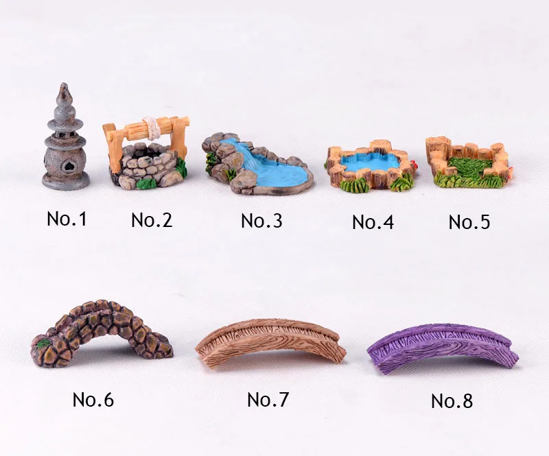 Product material: resin Applicable scene: bonsai, micro landscape, fish tank Product Description: The product belongs to the mini decorative ornaments, please refer to the size before buying. Product Size: 01:2.2*4.9cm (0.87*1.93") 02:3.9*2.8cm (1.54*1.1") 03:5.4*1.6cm (2.13*0.63") 04:3.9*2.8cm (1.54*1.1") 05:3.8*1.2cm (1.50*0.47") 06:6.6*2.5cm (2.59*0.98") 07:6.9*1.6cm (2.71*0.63") 08:6.9*1.6cm (2.71*0.63")