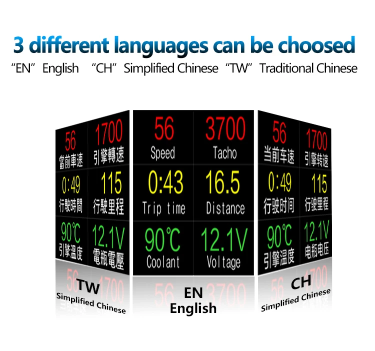 Характеристики: Новый ускоренный конкурентоспособный режим, тест на тормозную производительность, чтение всего потока данных автомобиля, использование ЖК-экрана, можно увидеть только информацию дисплея от HUD, без отражения, более четкое в течение дня