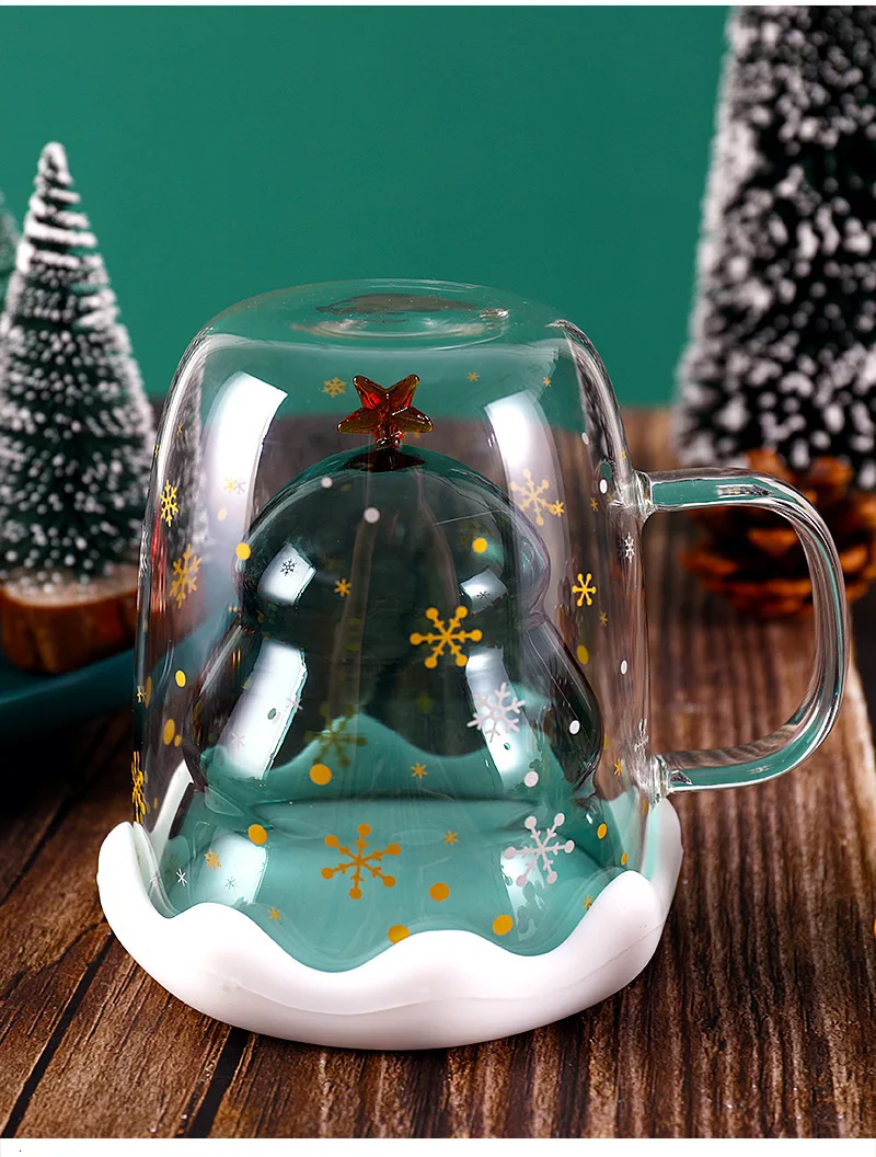 Креативные 3D прозрачные двойные антиобжигающие стеклянные чашки с рождественской елкой и звездой кофейные кружки чашка с молочным соком Детский Рождественский подарок