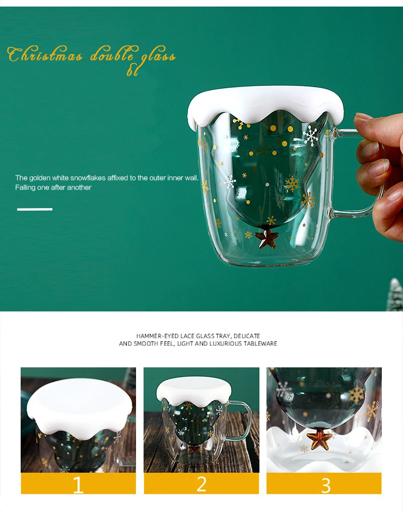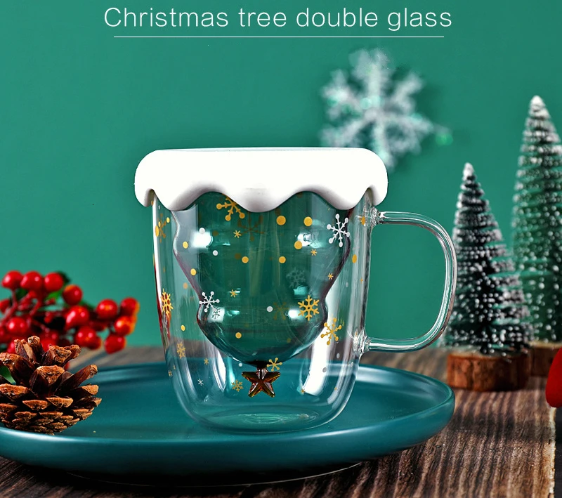 Двойная кофейная чашка, двойное стекло, креативное стекло, Рождественская елка, стекло со звездой, стакан с двойным стеклом, 300 мл