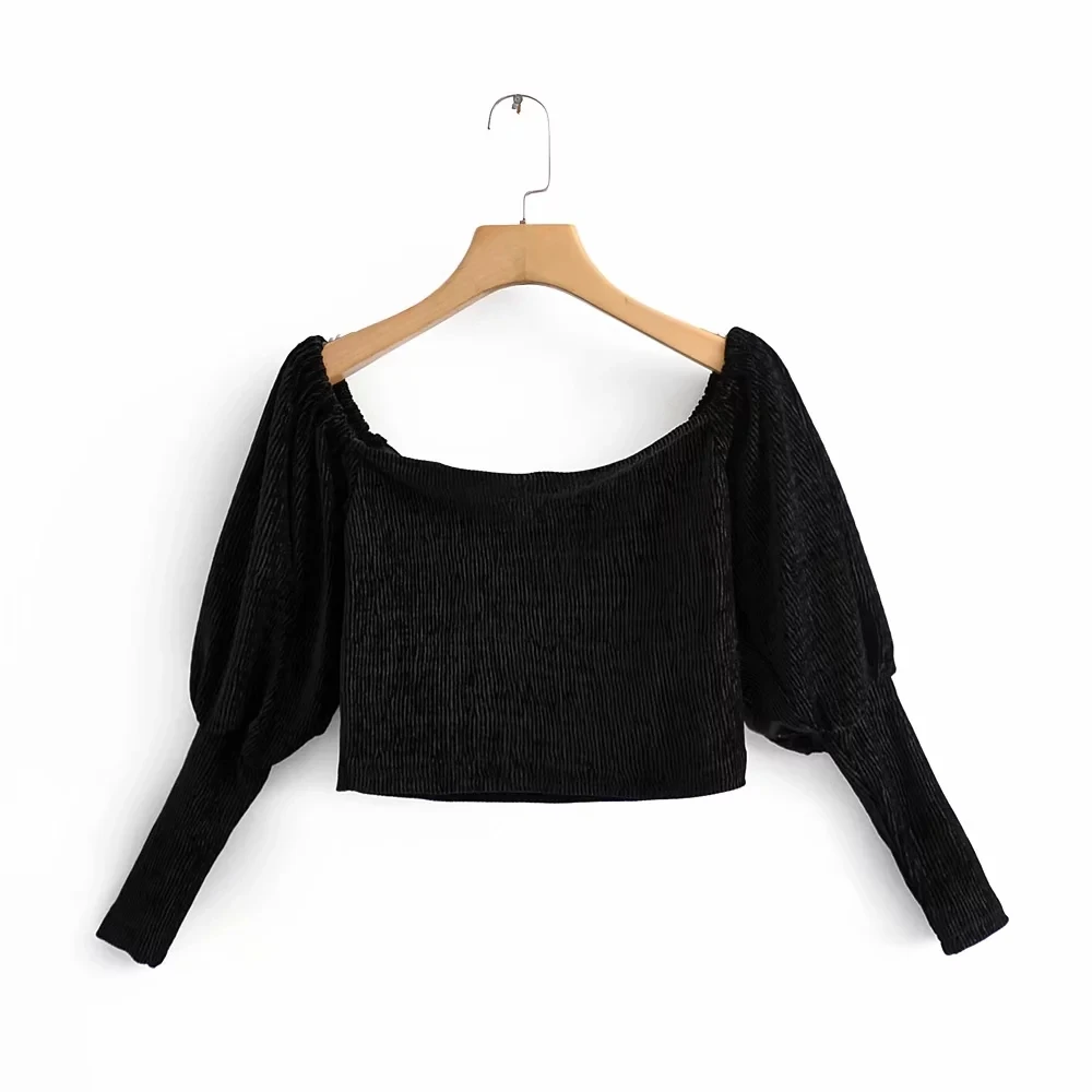 Женский бархатный топ с длинным рукавом и v-образным вырезом, Черный Повседневный Топ zora vicky, женские сексуальные топы, женская зимняя одежда 2019
