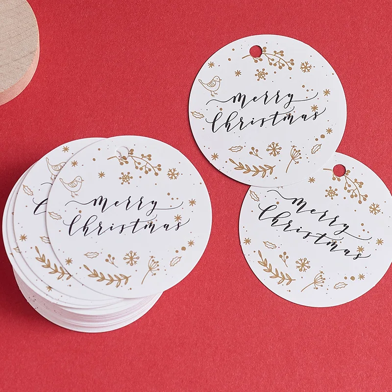 100 шт рождественские печатные круглые крафт-бумажные бирки, рождественский подарок, сделай сам, висячая бирка, имя багажа, этикетка, карта, пустая цена, бирки 5 см для дня рождения, свадьбы, Рождества, украшенияПринадлежности