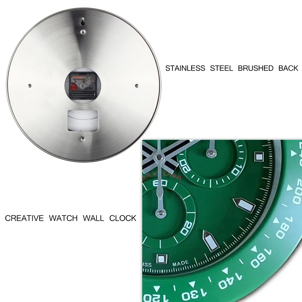 Описание продукта: Размер часов: 34*34*5 см Материал часов: качественная нержавеющая сталь + стеклянные линзы Часовой механизм: Sweep slient movemvent Питание от 1 * AA batter Идеально подходит для: комнаты/дома/офиса/подарка