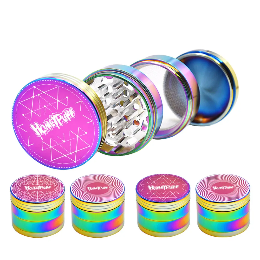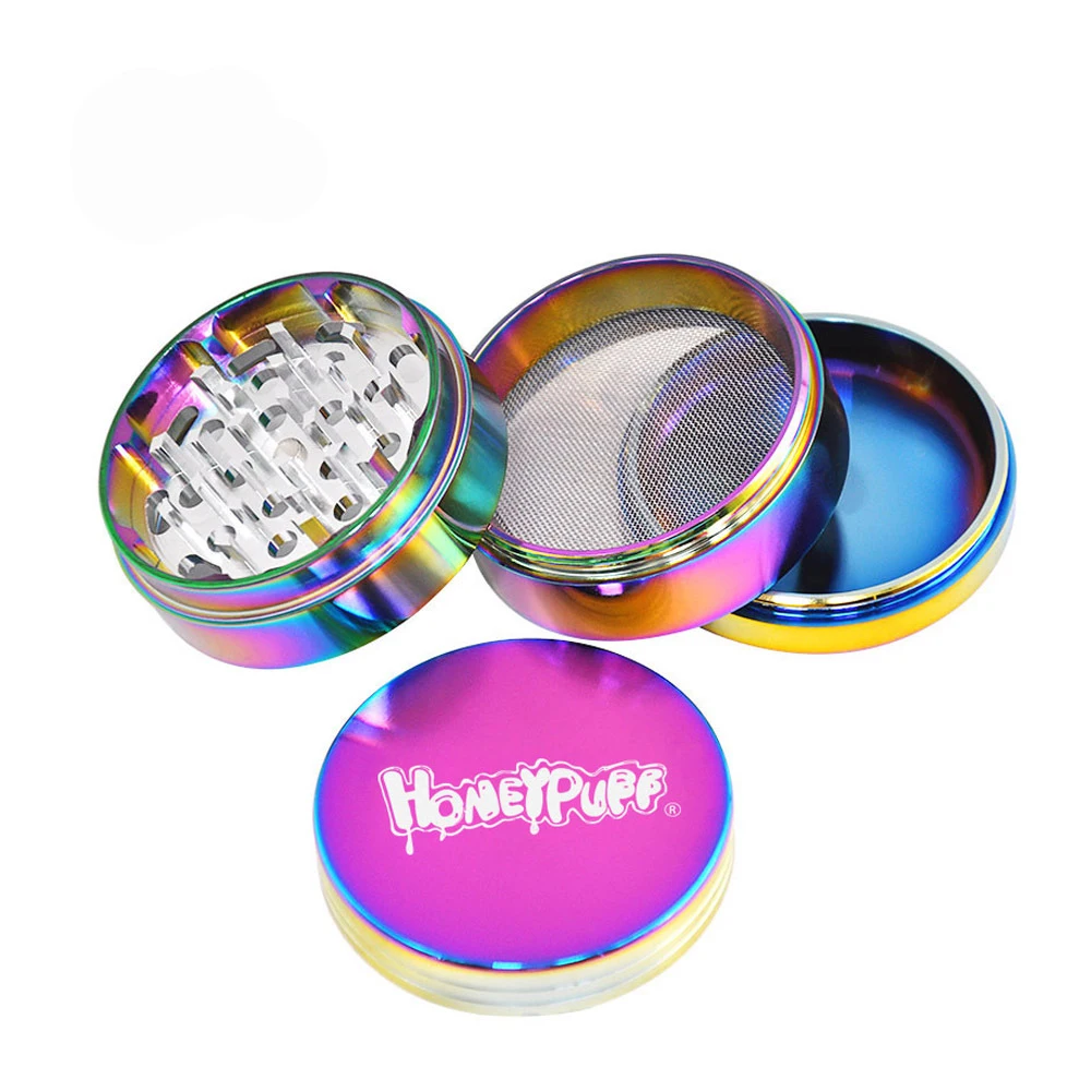 1 х Радужный цвет "HoneyPuff" Алюминиевый курительный травяной измельчитель