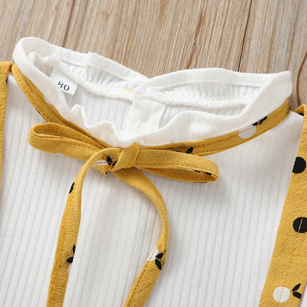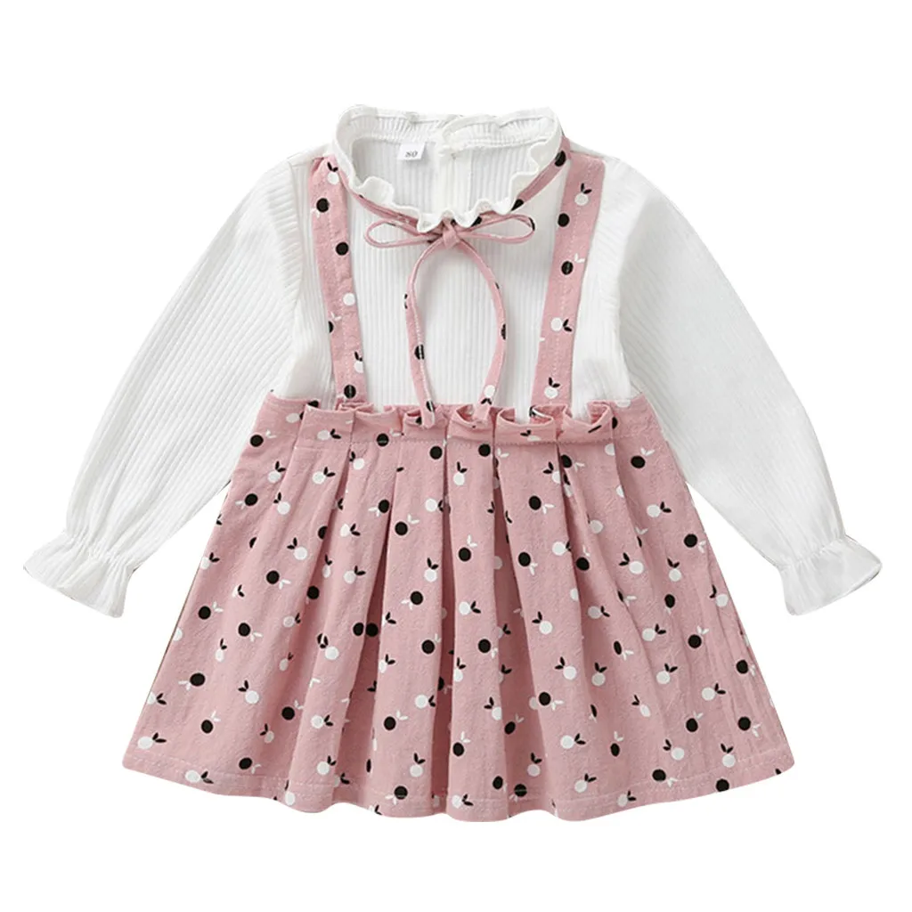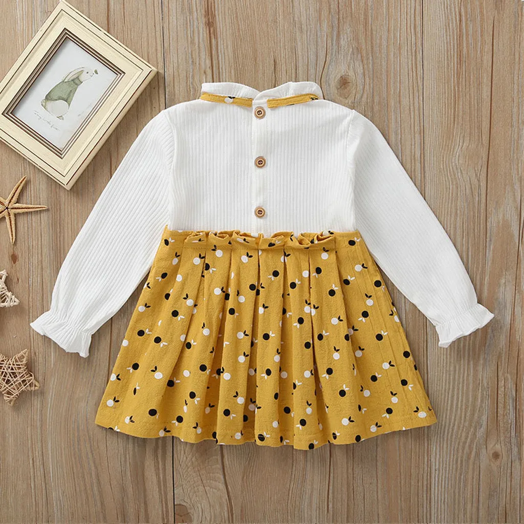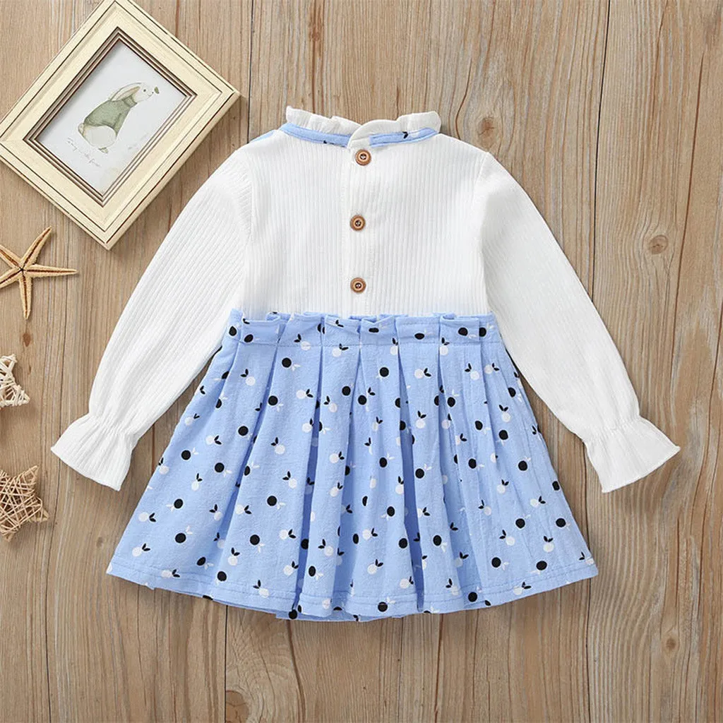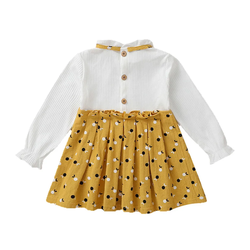 Одежда с длинными рукавами и бантом для маленьких девочекВ горошекПлатье В лоскутном стиле