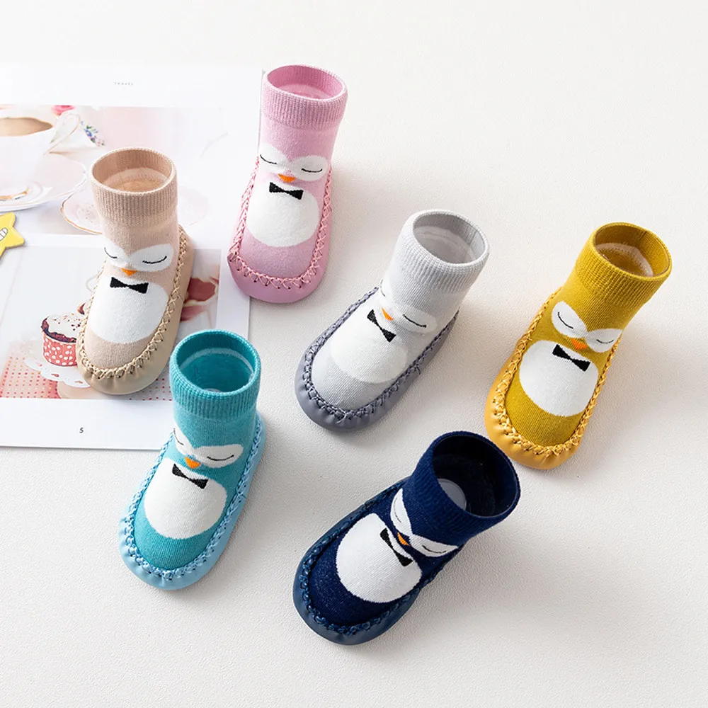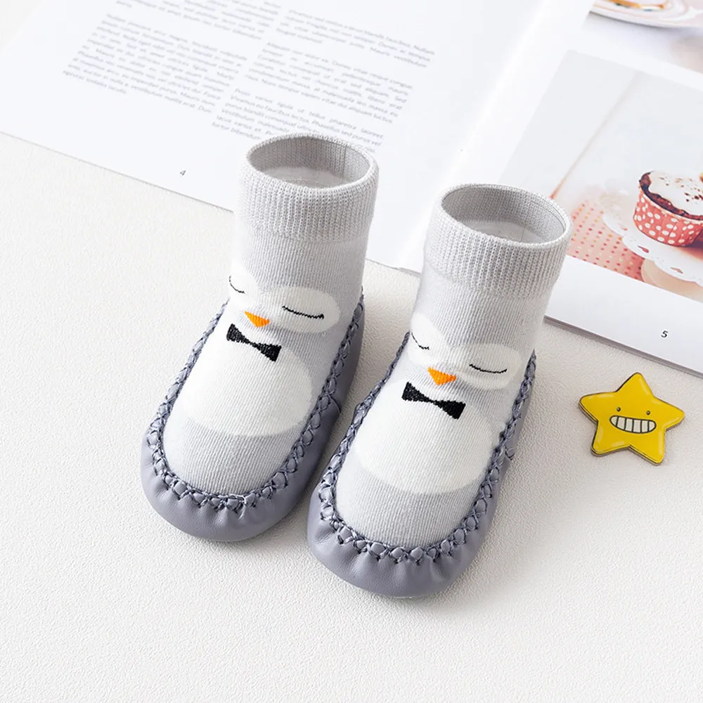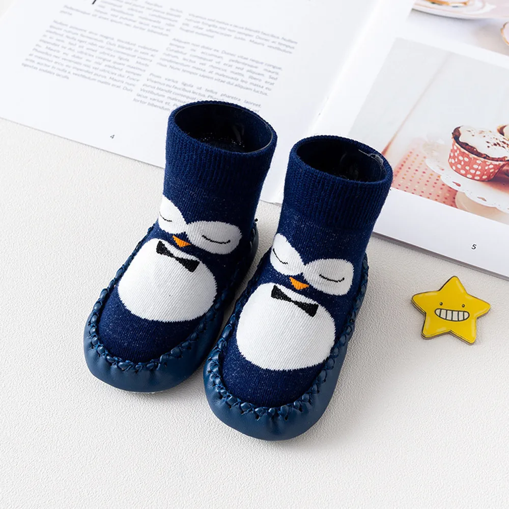 Обувь для маленьких мальчиков и девочек с милым рисунком пингвина из мультфильма; обувь для малышей; зимние носки