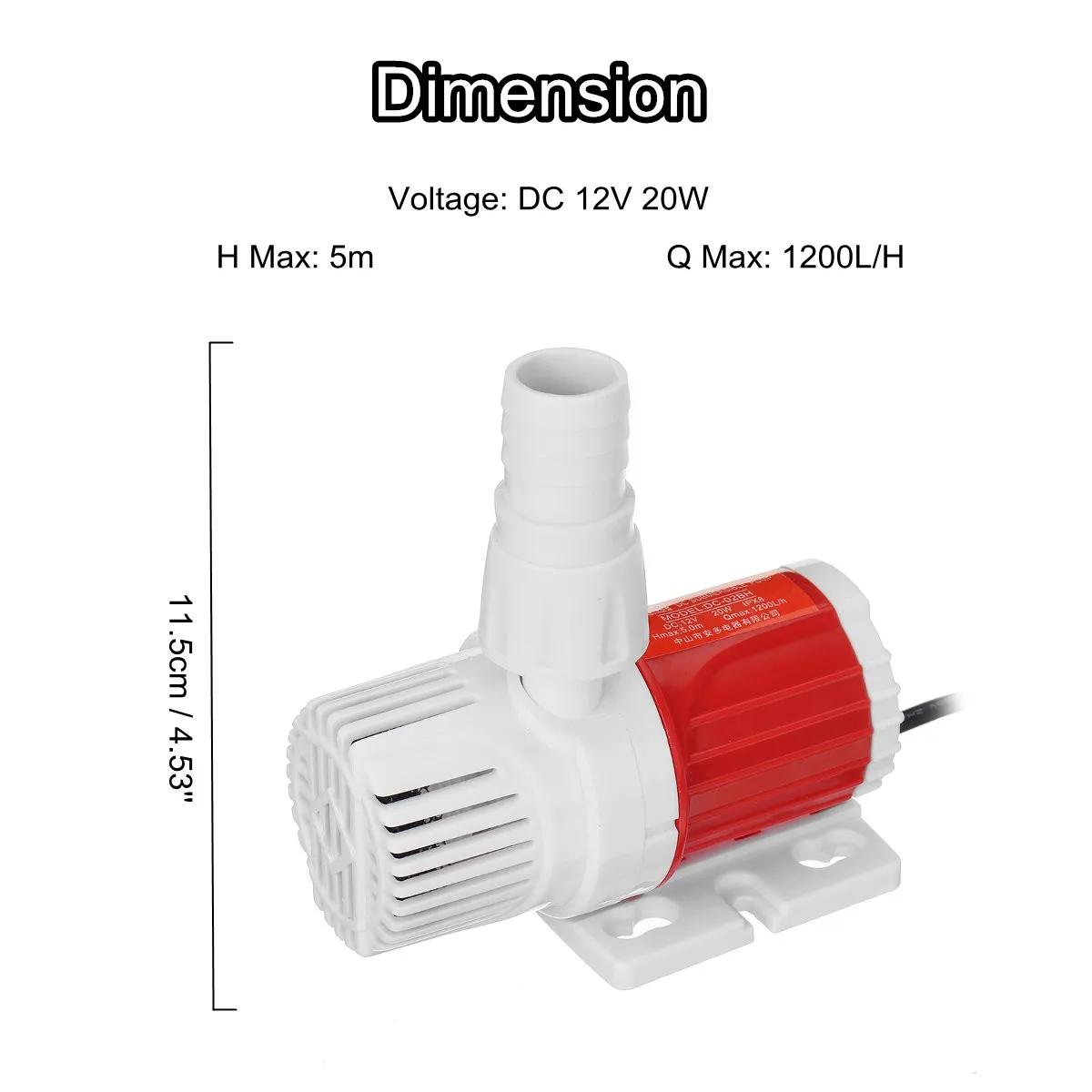 1200л/Ч DC 12 В 20 Вт погружной насос пластиковый керамический сердечник IPX8 водонепроницаемый бесщеточный мотор насос низкого давления 5 м для аквариума пруда
