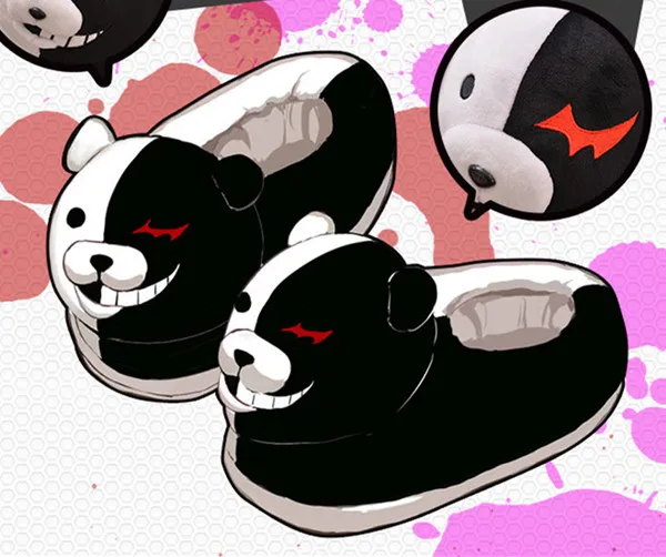Артикул: черный белый медведь Danganronpa Косплей Монокума обувь плюшевые домашние тапочки