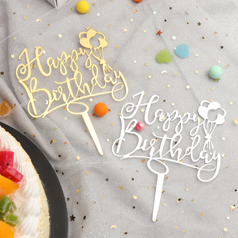 Новый Топпер для торта «С Днем Рождения» акриловая буква цвета: золотистый, серебристый Топ с нарядной юбкой декор с флагами для вечеринка для мальчика день рождение принадлежности для свадебных церемоний Дети пользу