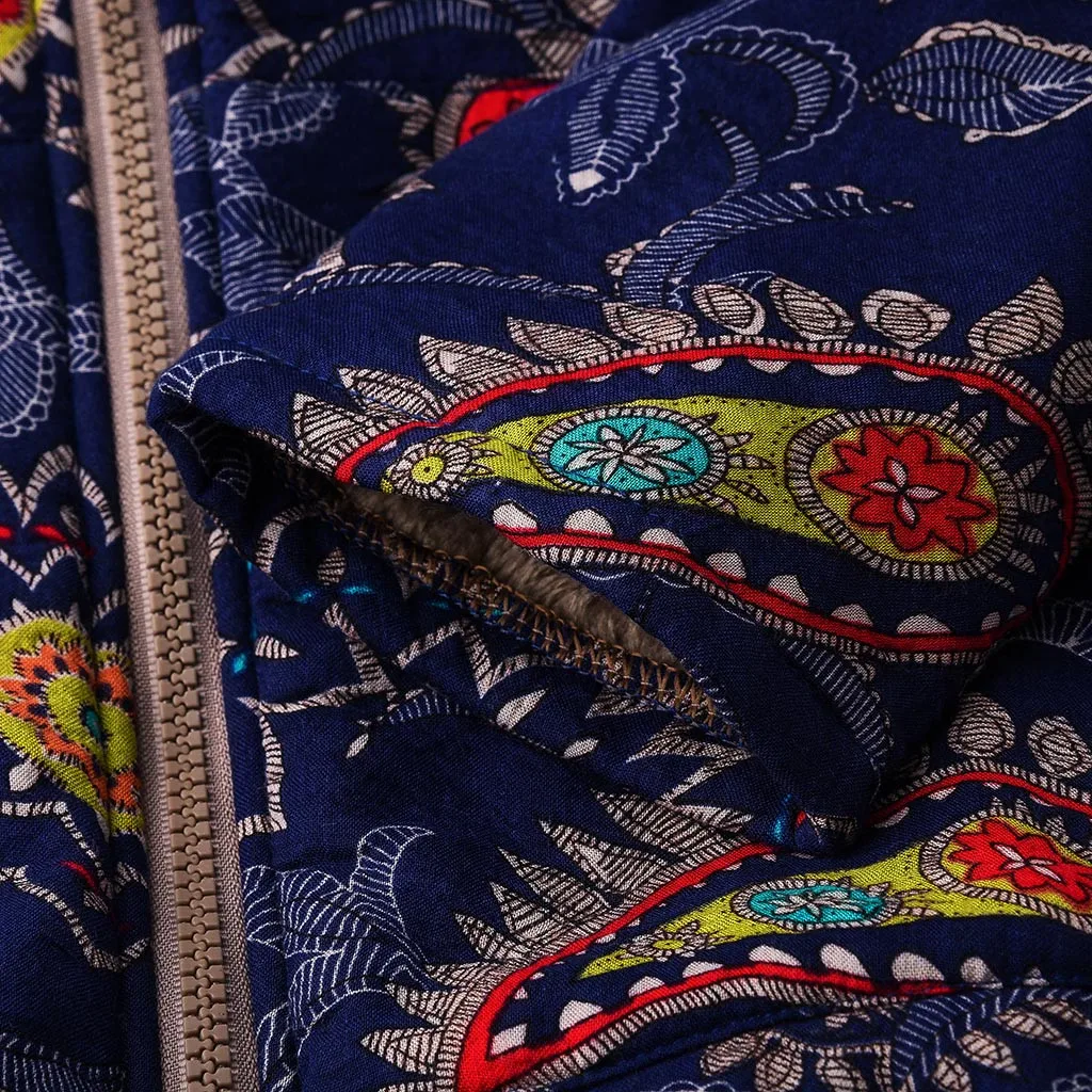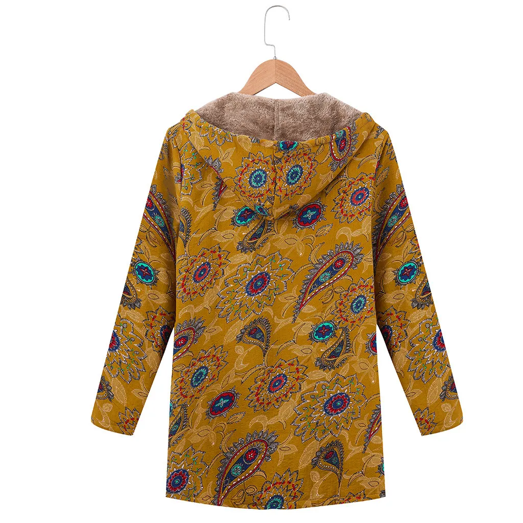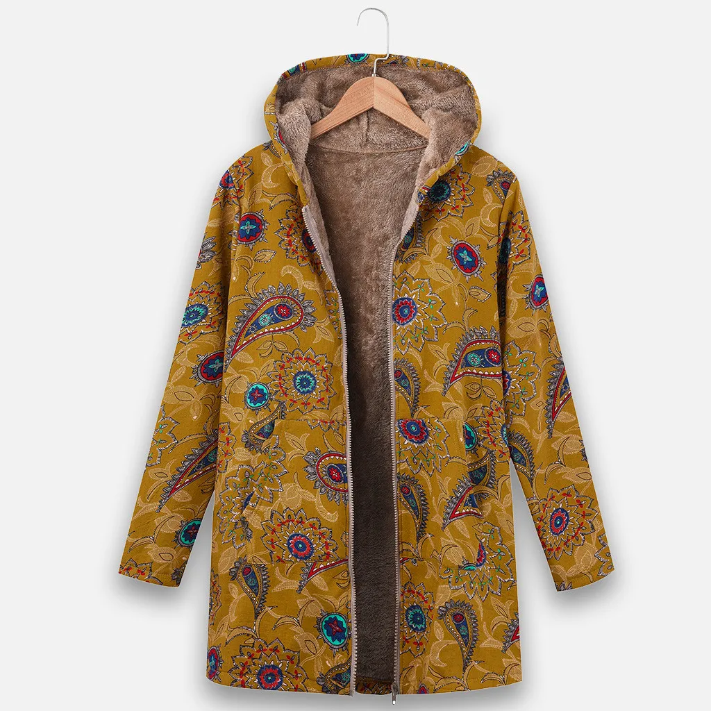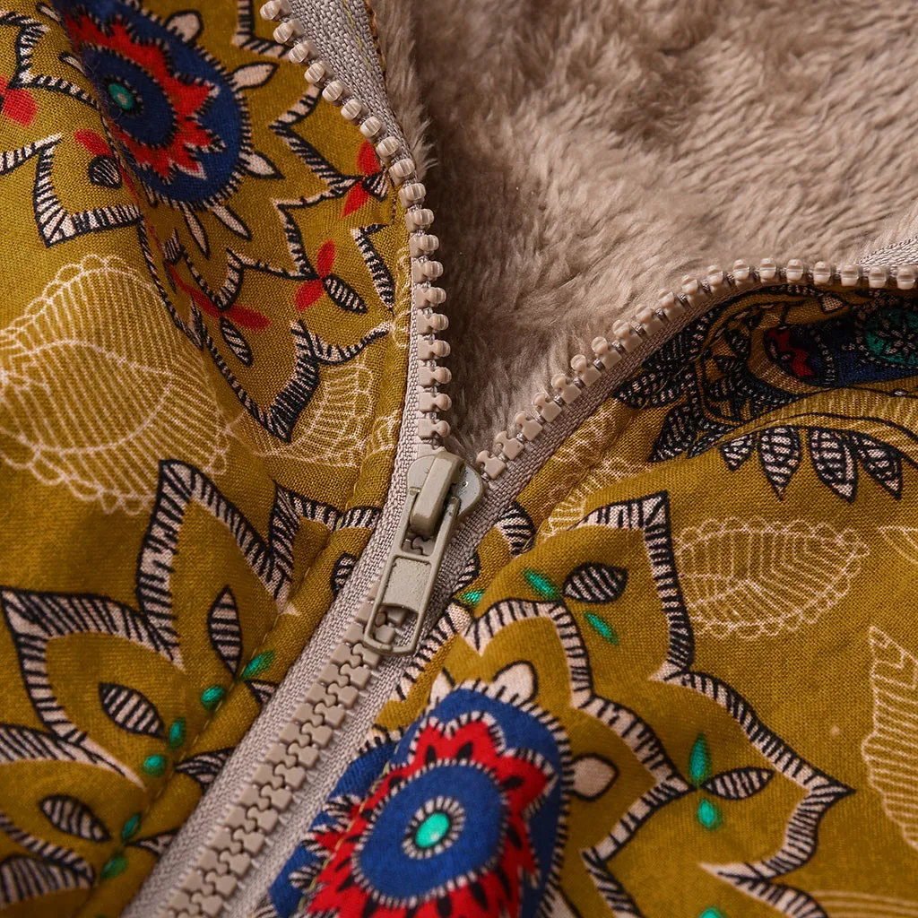 Женское винтажное флисовое пальто на молнии с капюшоном и этническим принтом размера плюсИнформация о продукте