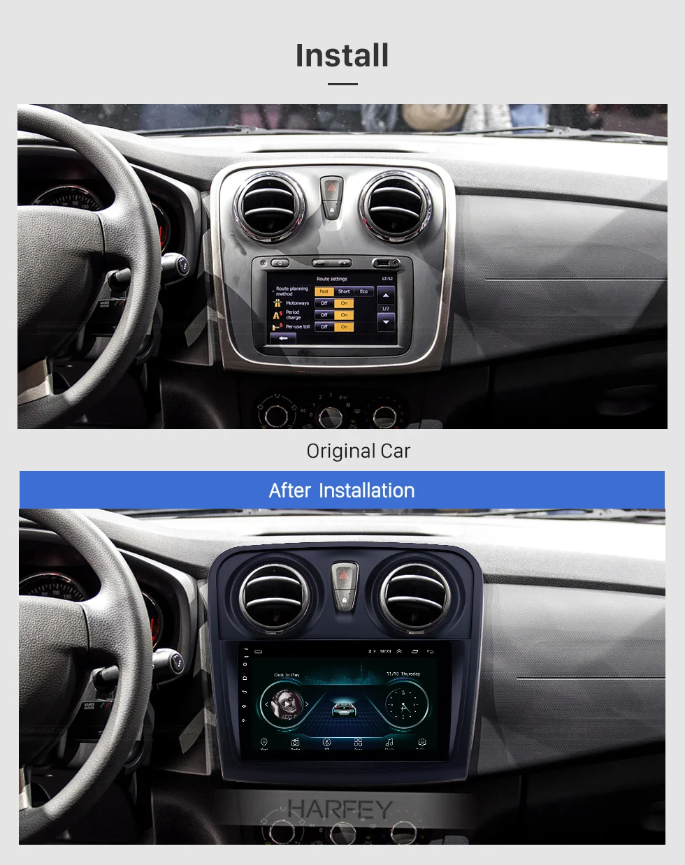 Harfey 9 дюймов Android 8,1 Автомобильный gps навигатор мультимедийный плеер радио для Renault Dacia Sandero 2012 2013 2014 2015 2016 2017 поддержка Carplay TPMS