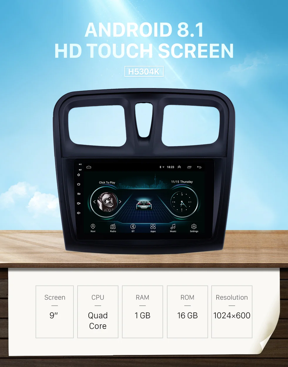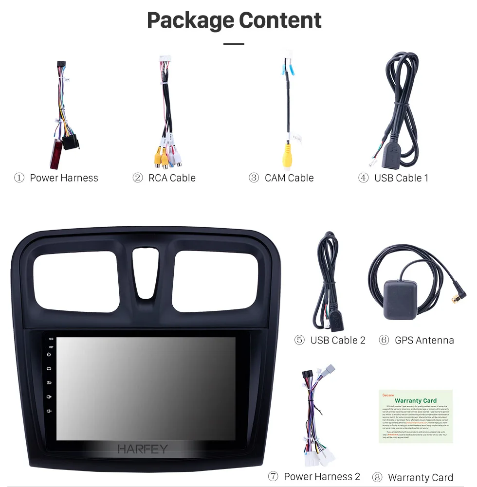 Harfey 9 дюймов Android 8,1 автомобильный радиоприемник с навигацией GPS головное устройство для 2012 2013 2014 2015 2016 2017 Renault Sandero авто стерео Поддержка Carplay DVR OBD