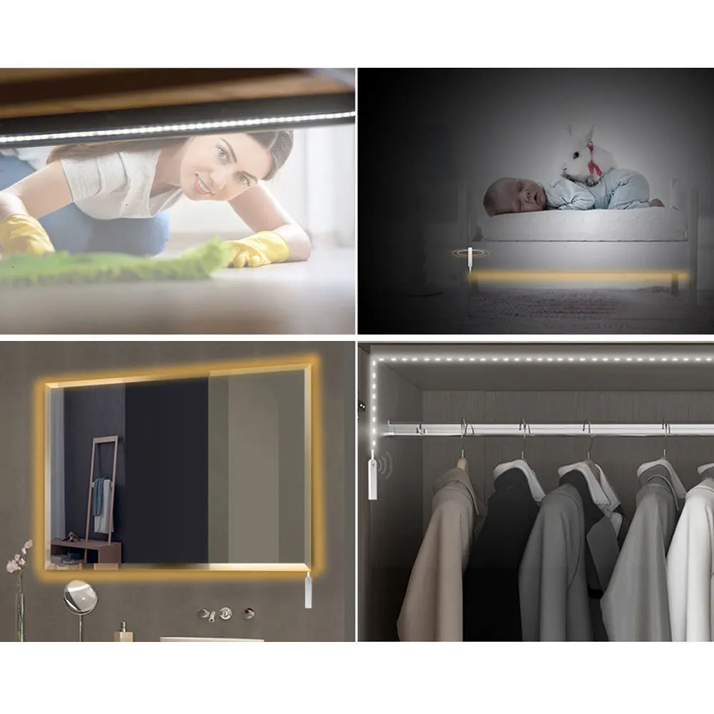 Технические характеристики:Тип: 5 В 2835 Светодиодная лента с датчиком движения Светильник Цвет: белый/теплый белый (2700-3200 K) Цветовая температура: белый (6000 k-6500 K); Теплый белый (2700 K-3500 K) Расстояние срабатывания: 2 m-5 m Время-задержка: 15sec-5min (регулируемая) Светильник: 2 режима. Режим 1: день и ночь Режим 2: движение по кругу в ночное Длина светодиодной ленты: 1 м/2 м/3 м Количество светодиодов: датчик движения полоса 60 светодиодов/м, USB полоса 30 светодиодов/м. Водонепроницаемый Класс: IP65 Батарея: 4 АА Батарея Режимы работы: «Вкл» и «Пир» Когда вы нажимаете кнопку, красный светильник включается, светодиодный светильник всегда будет держать светильник включенным, когда вы нажимаете кнопку снова, красный светильник будет выключен, это будет режим "PIR".В комплект входит:1 х Светодиодные полосы света 1 x светодиодный движения Сенсор Управление коробка (4 АА Батарея не входит в комплект)
