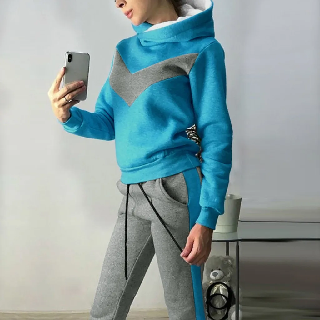 Модная женская Лоскутная Толстовка с длинными рукавами для отдыха + комплект из 2 предметов
