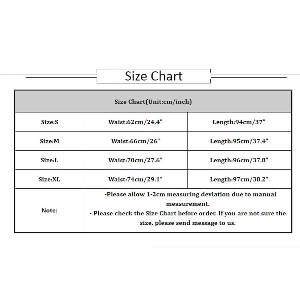 Размеры Таблица (единица измерения: см/дюйм) Размеры: S Талия: 62 см/24,4" Длина: 94 см/37" Размеры: М Талия: 66 см/26" Длина: 95 см/37,4" Размеры: L Талия: 70 см/27,6" Длина: 96 см/37,8" Размеры: XL Талия: 74 см/29,1" Длина: 97 см/38,2" Примечание: -Пожалуйста, Возможны отклонения в 1-2 см вследствие измерений вручную.-Пожалуйста, проверьтеРазмеры диаграммы Прежде чем делать заказ. Если вы не уверены в размере, пожалуйста, отправьте Напишите нам сообщение.