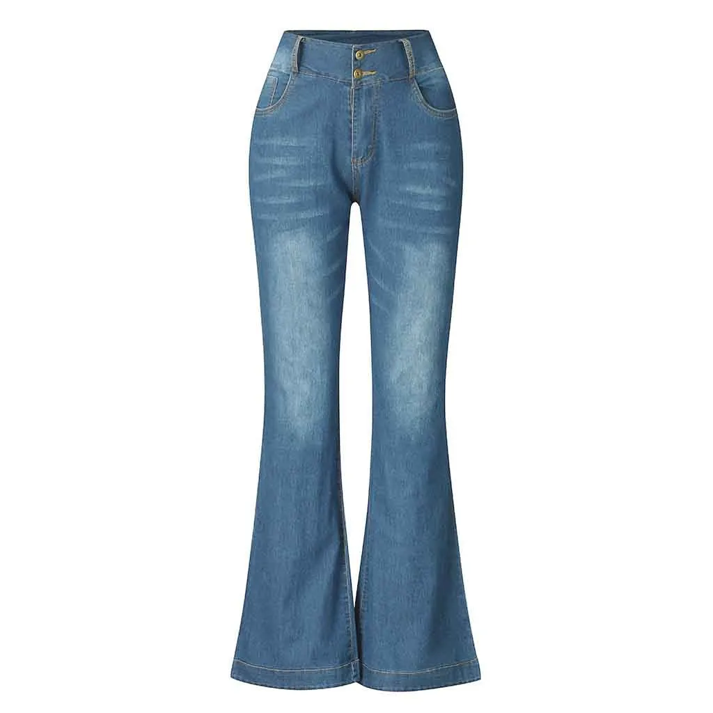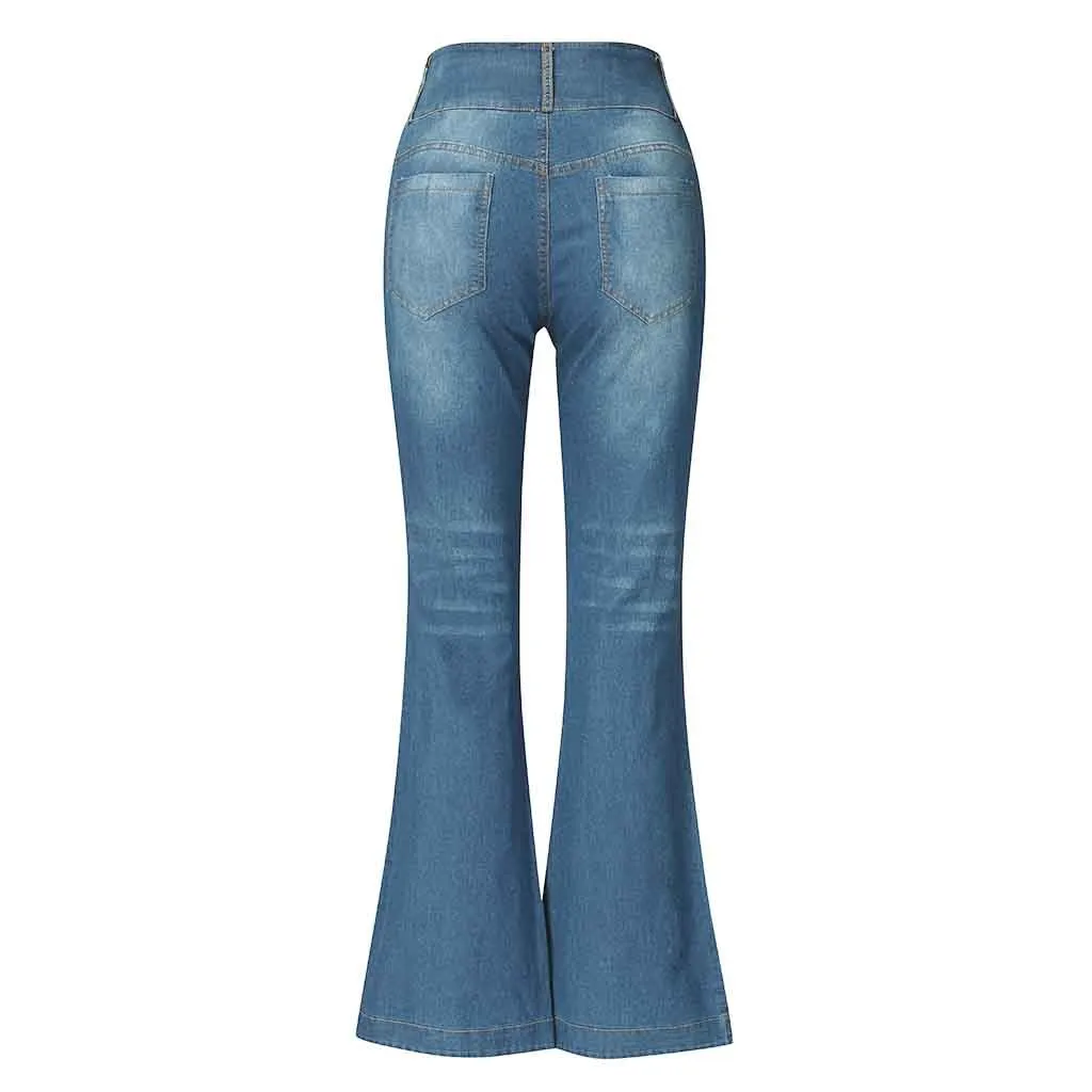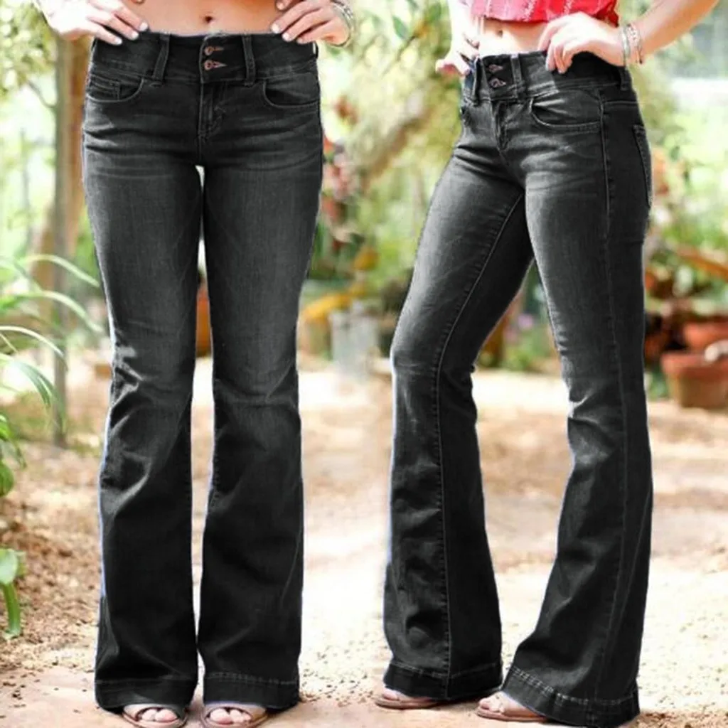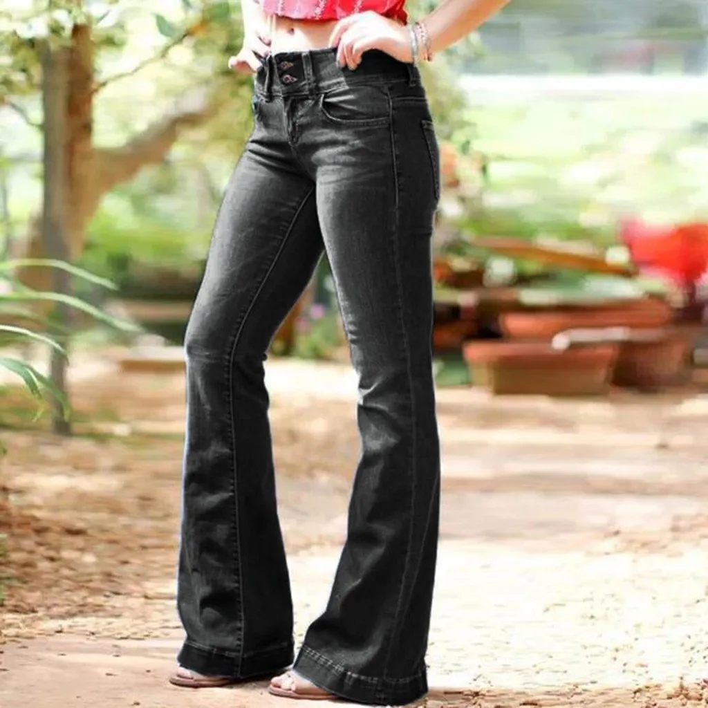 Женские расклешенные джинсы с пуговицами на талии, расклешенные джинсовые брюки