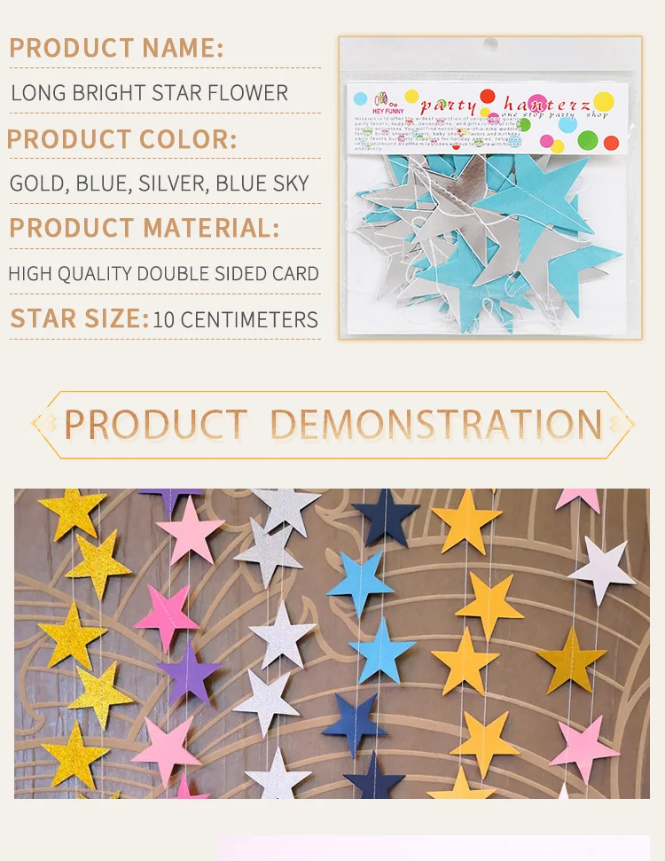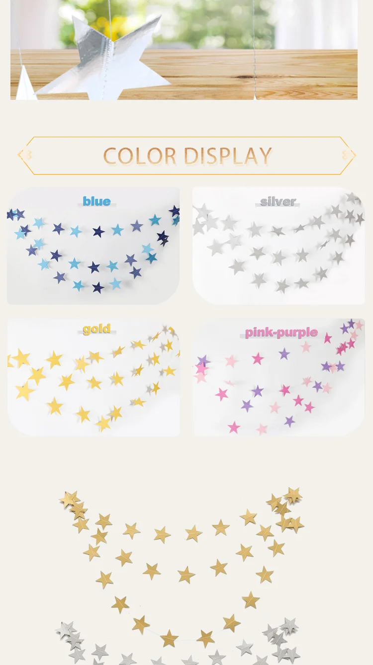 4 м свадебные украшения, Настенная бумага, блестящая Звезда, бумага, гирлянда, баннер, цепочка, вечерние украшения на день рождения, детский душ