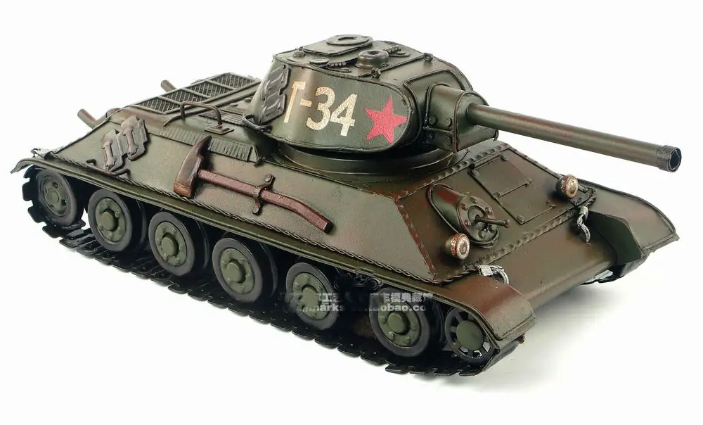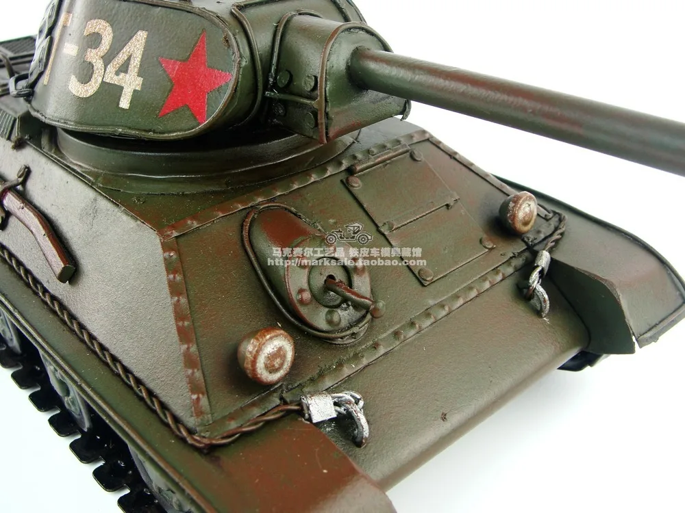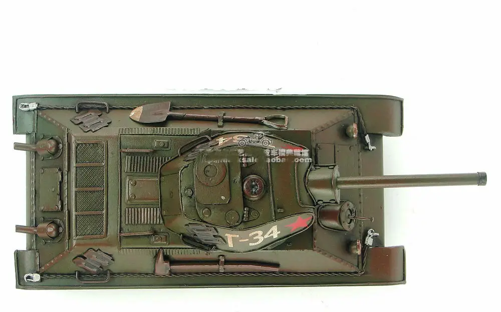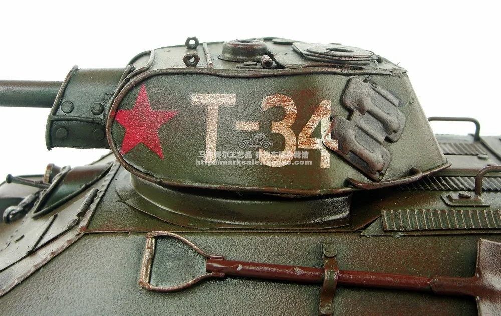 Название: 1940 советского T-34 главный боевой танк Материал: Прокат тонколистовый холоднокатаный стальной Размеры: 29*13,5*11,5 см Вес: около 1 кг Производственный процесс: ручной работы расписанные вручную и старый