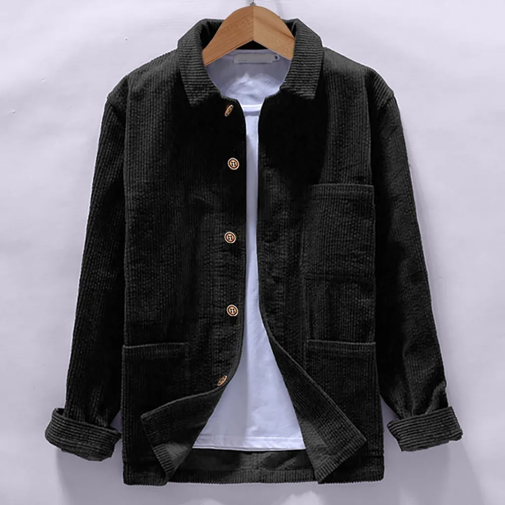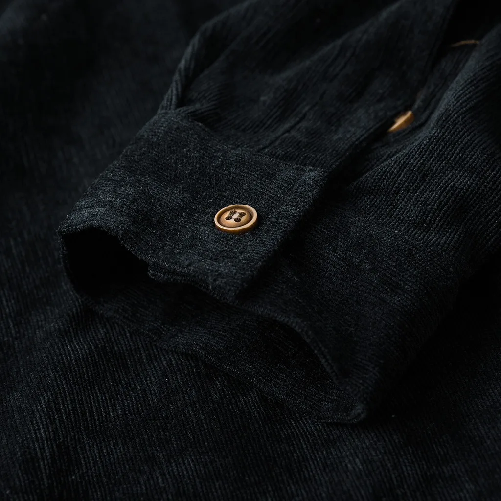 Мужские осенние модные рубашки, повседневные однотонные Топы с длинным рукавом, вельветовые повседневные блузки