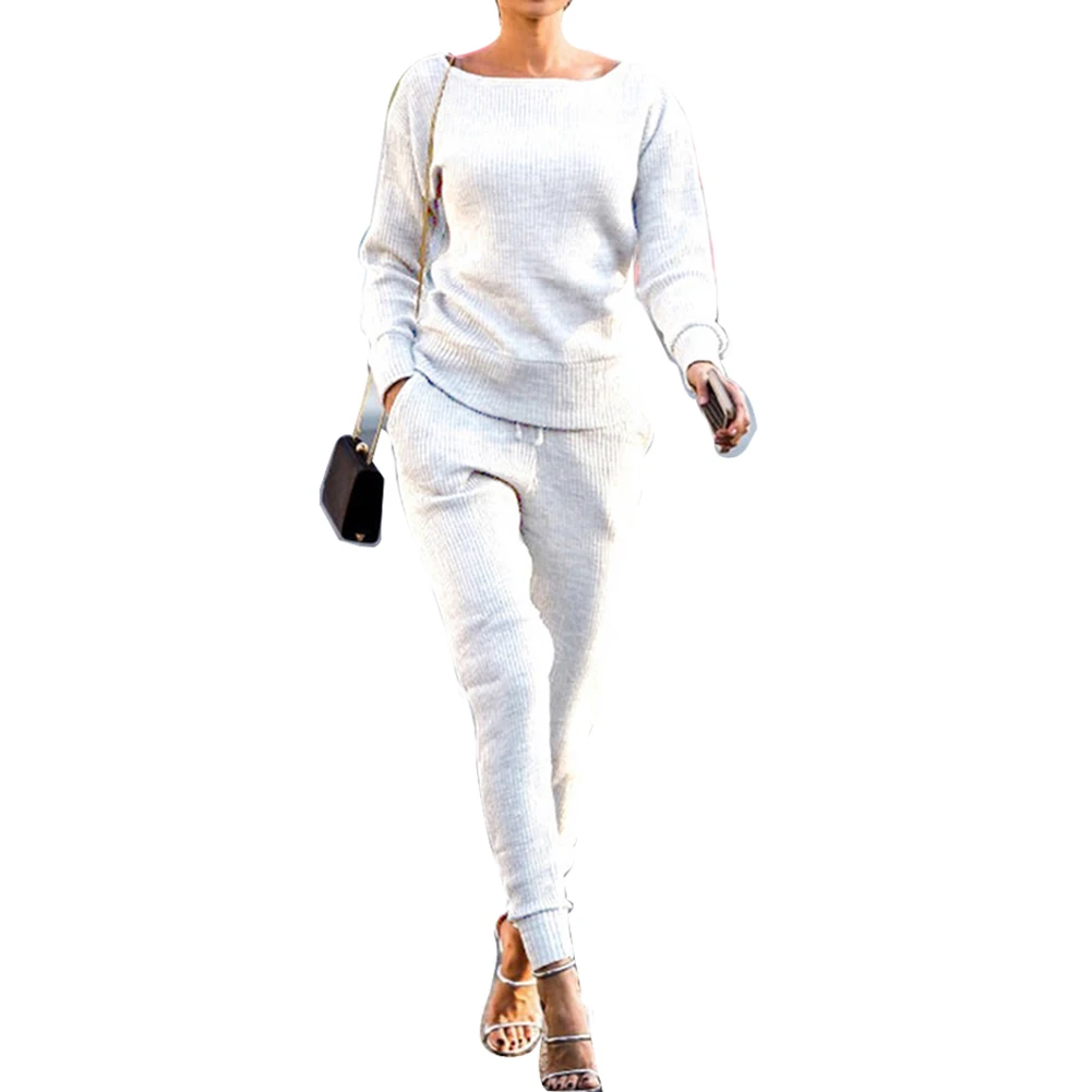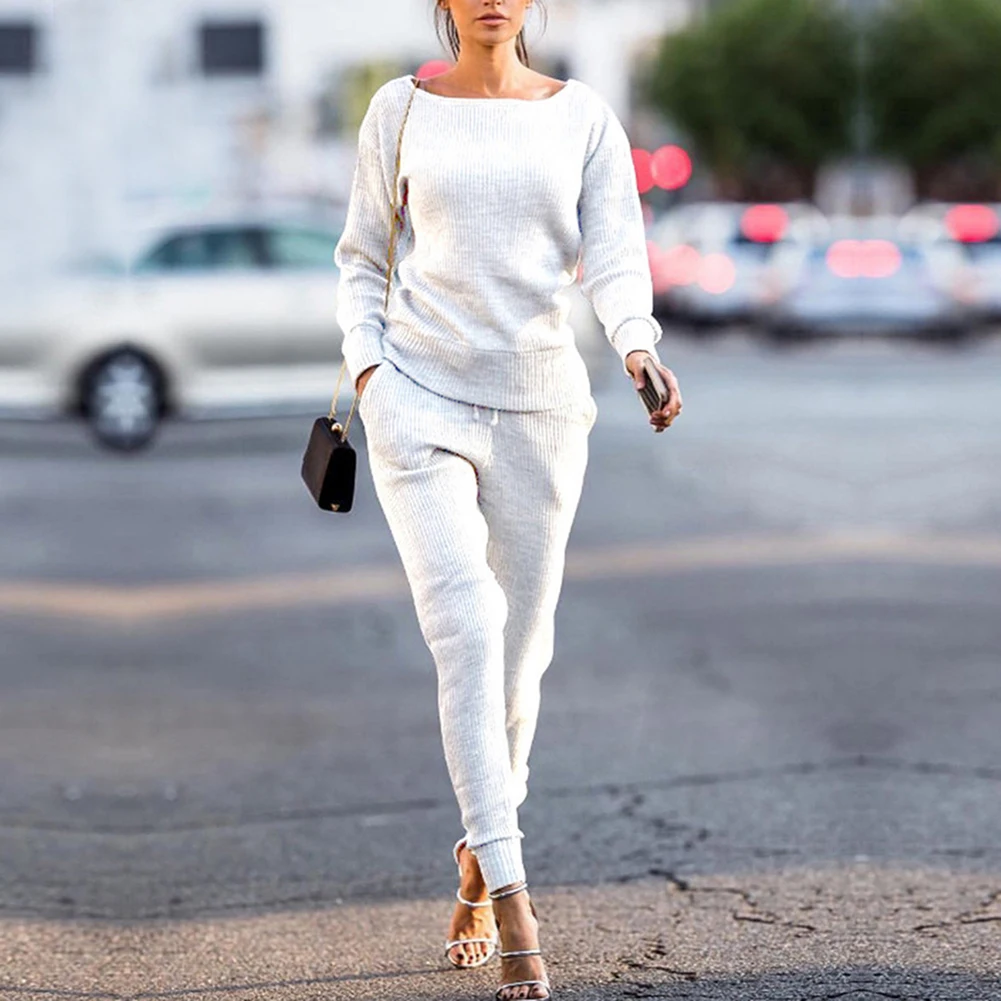 2 шт., спортивные женские спортивные костюмы, однотонные, с длинным рукавом, вязаный джемпер, комплект со штанами