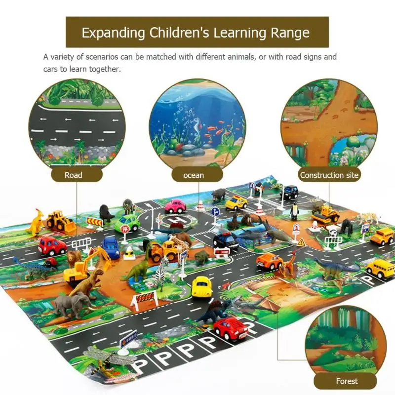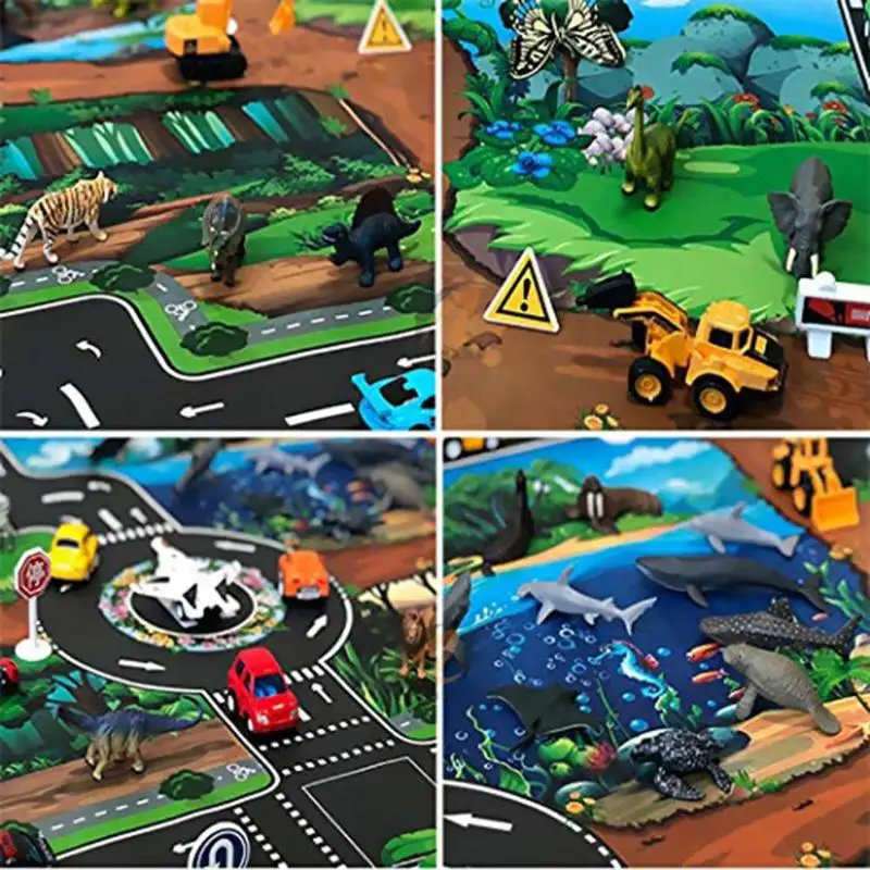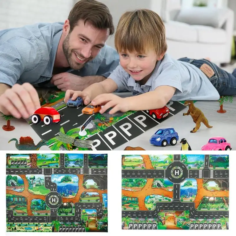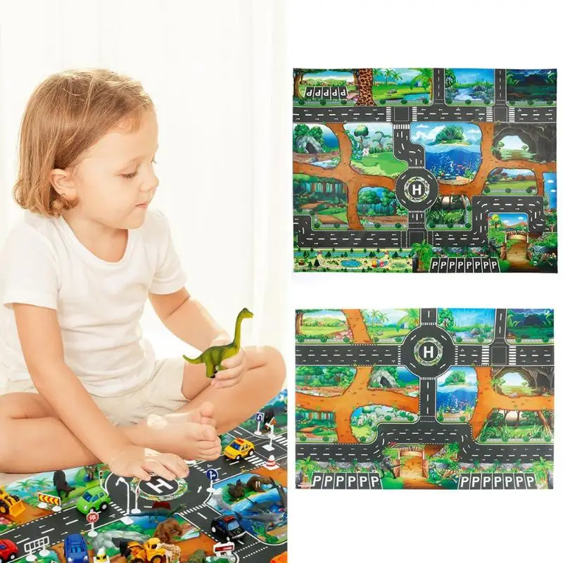 Детский игровой коврик из нетканого материала для ползания, динозавр, дорога дорожного движения, Детский напольный игровой коврик для скалолазания, коврик, игрушки